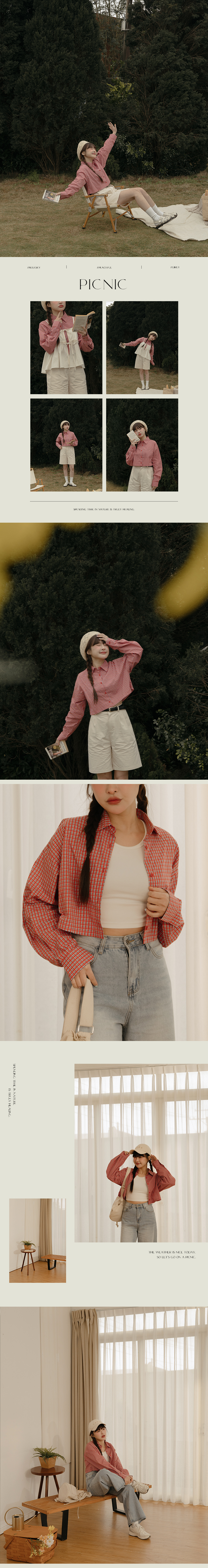 配色格纹造型短版衬衫