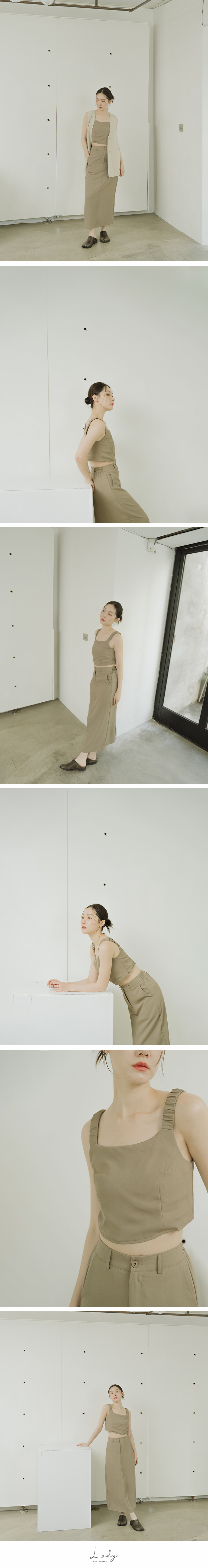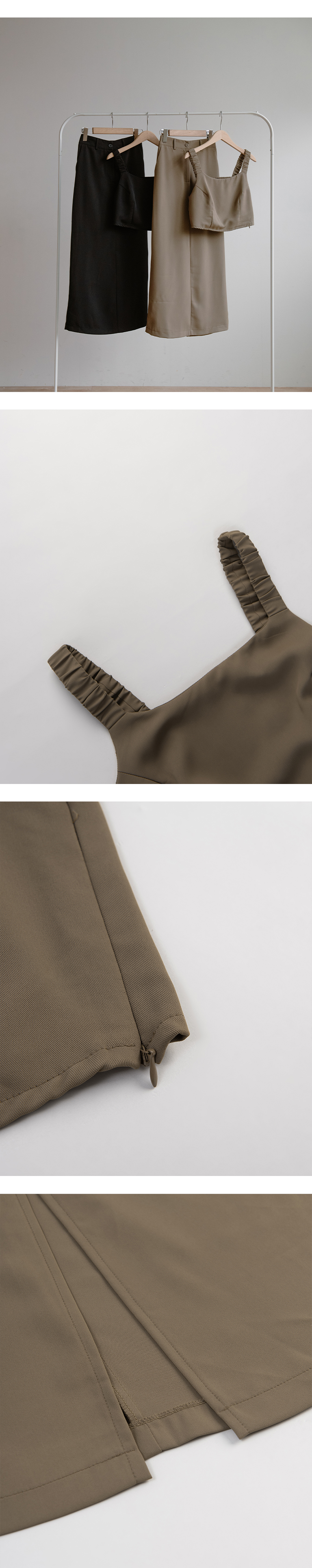 抓皱短版背心西装长裙套装-黑