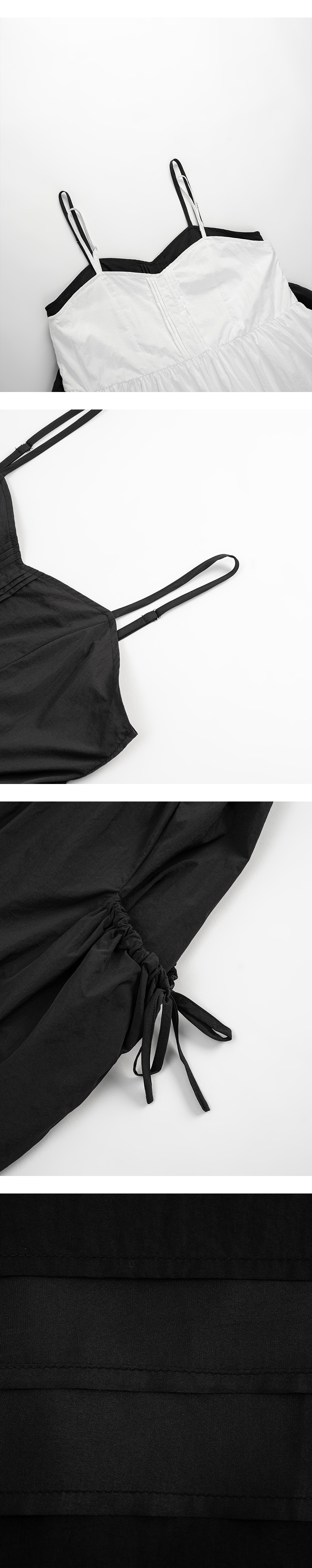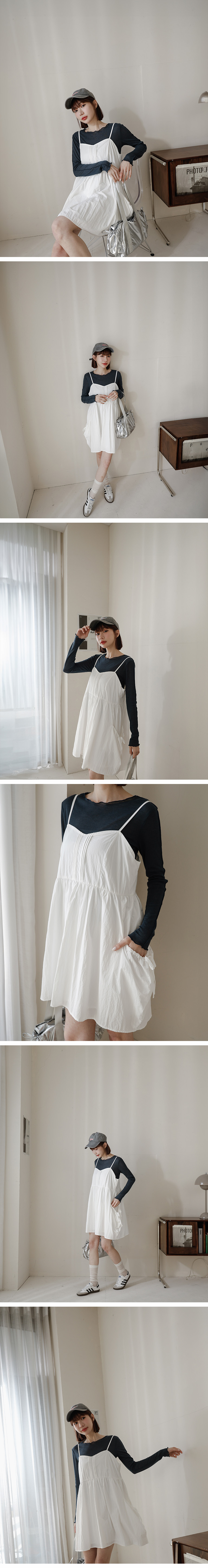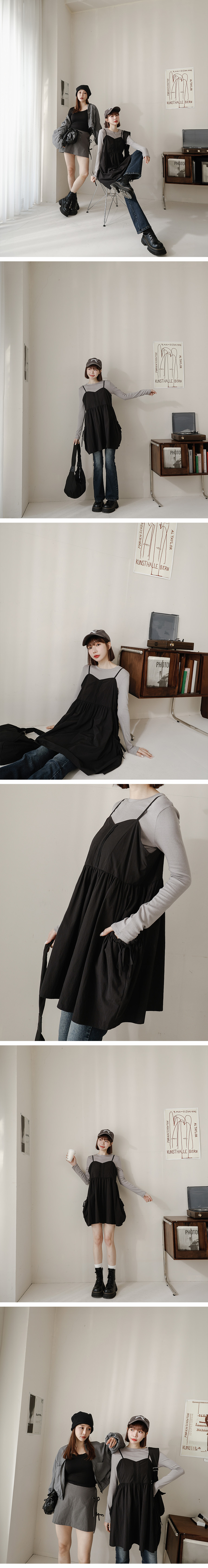前打褶V领大口袋细肩短洋装