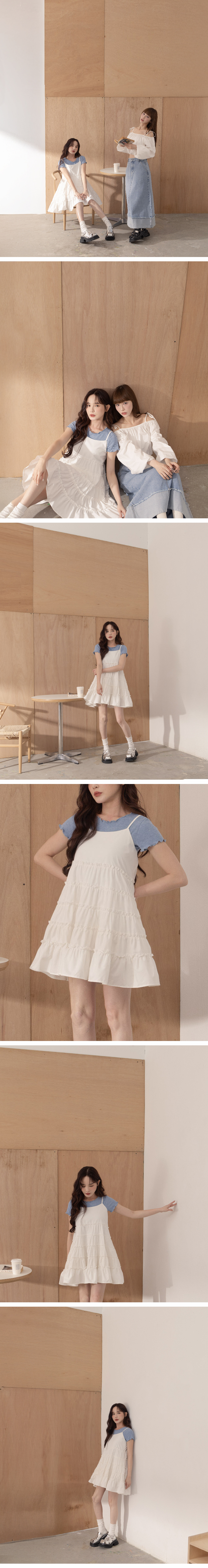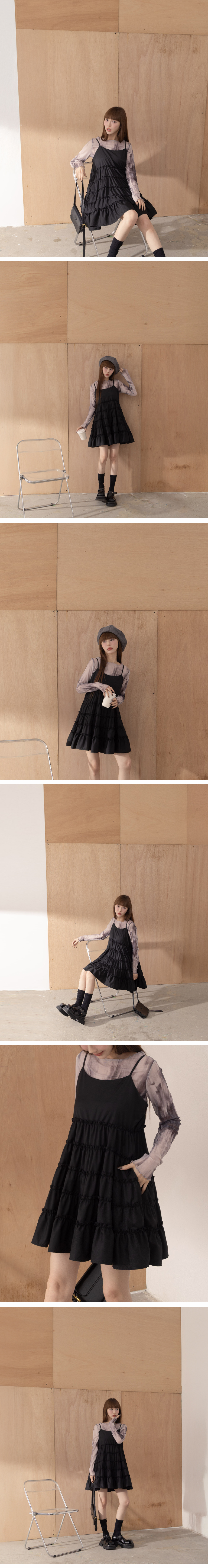 多层蛋糕剪接细肩短洋装