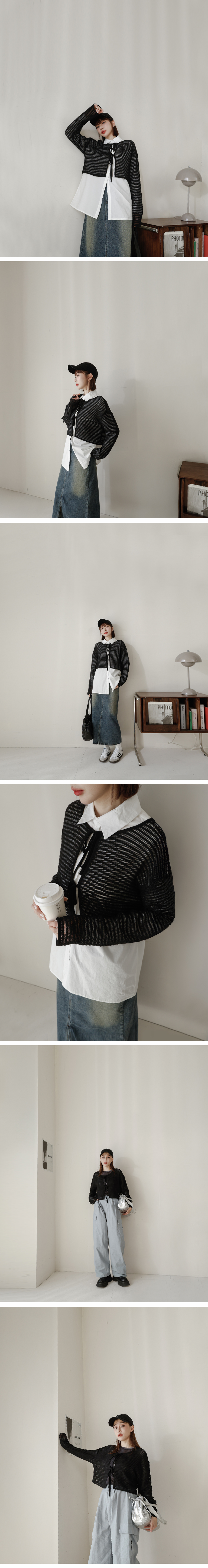 编织镂空绑带两穿式短版罩衫