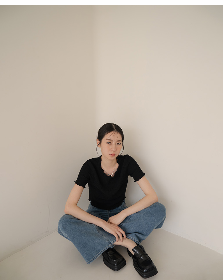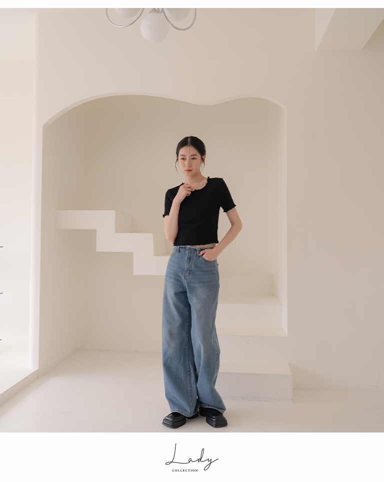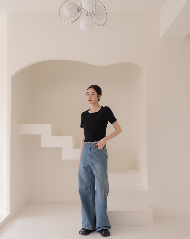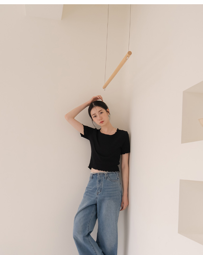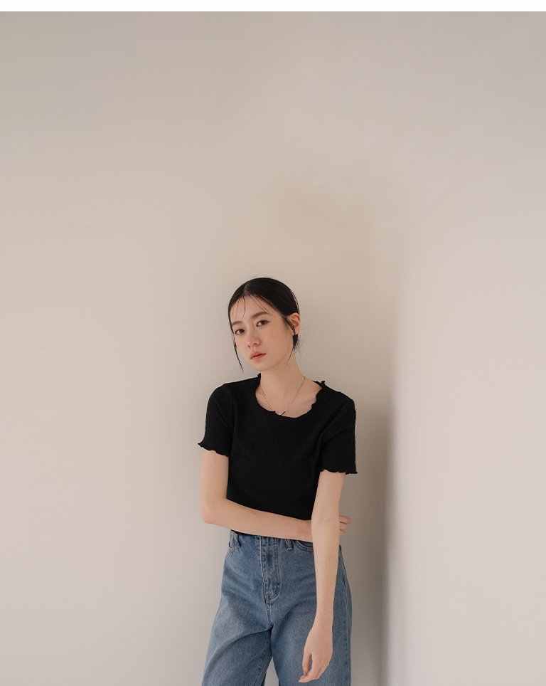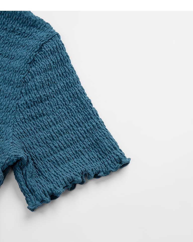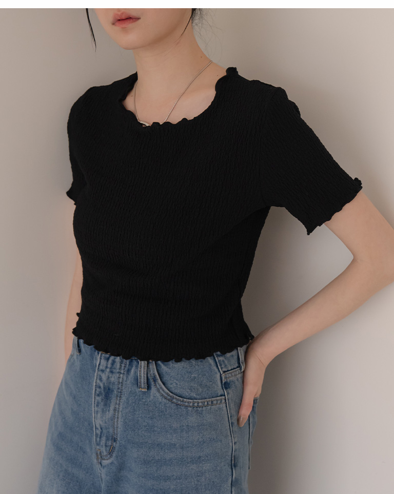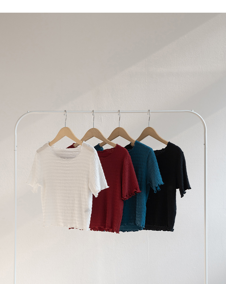 皱皱纹理木耳边造型短版上衣