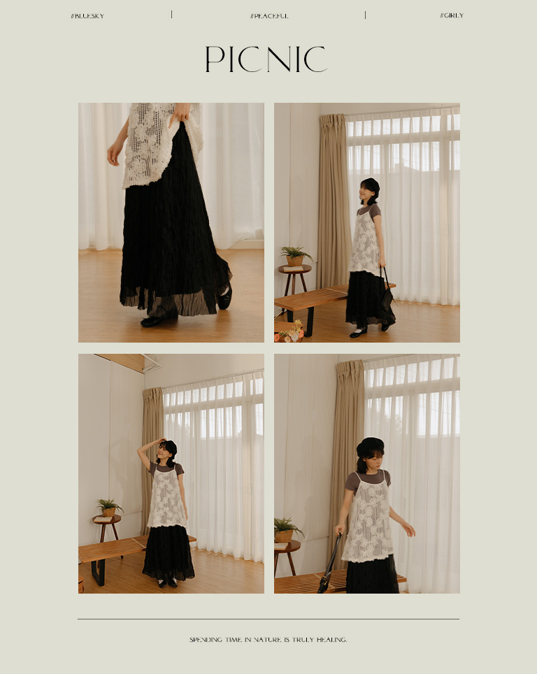 搭配短版上衣与透纱背心 展现日系甜美穿搭~