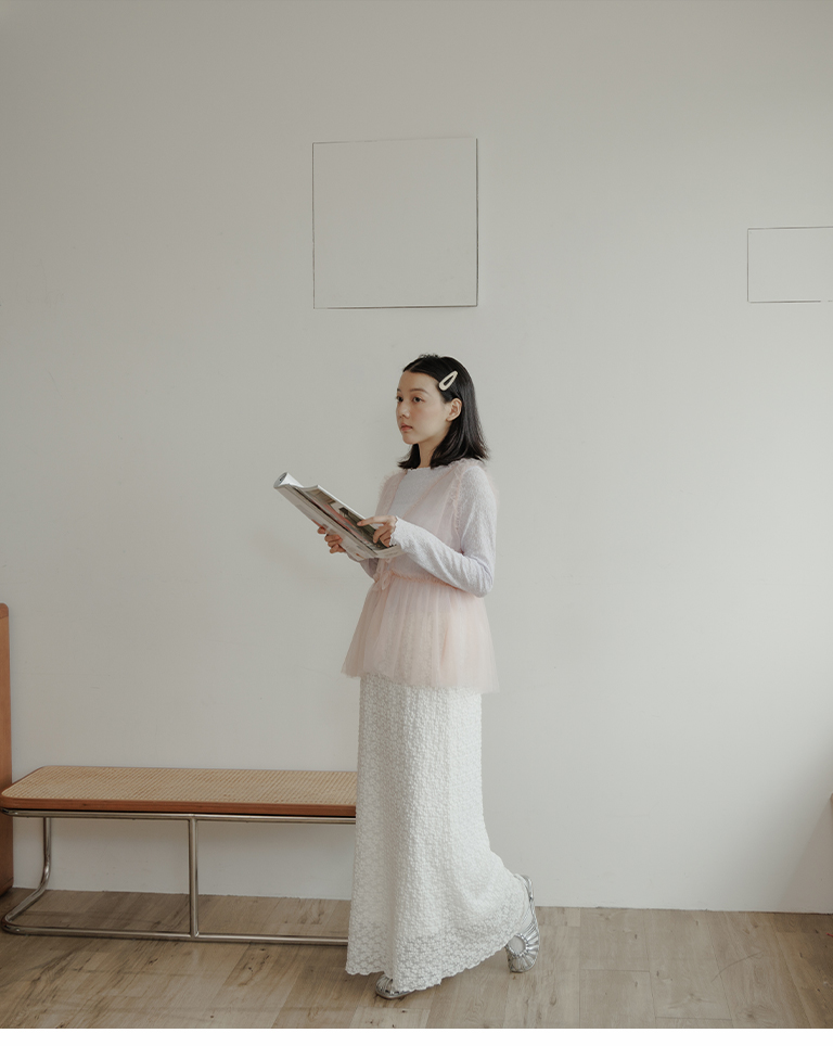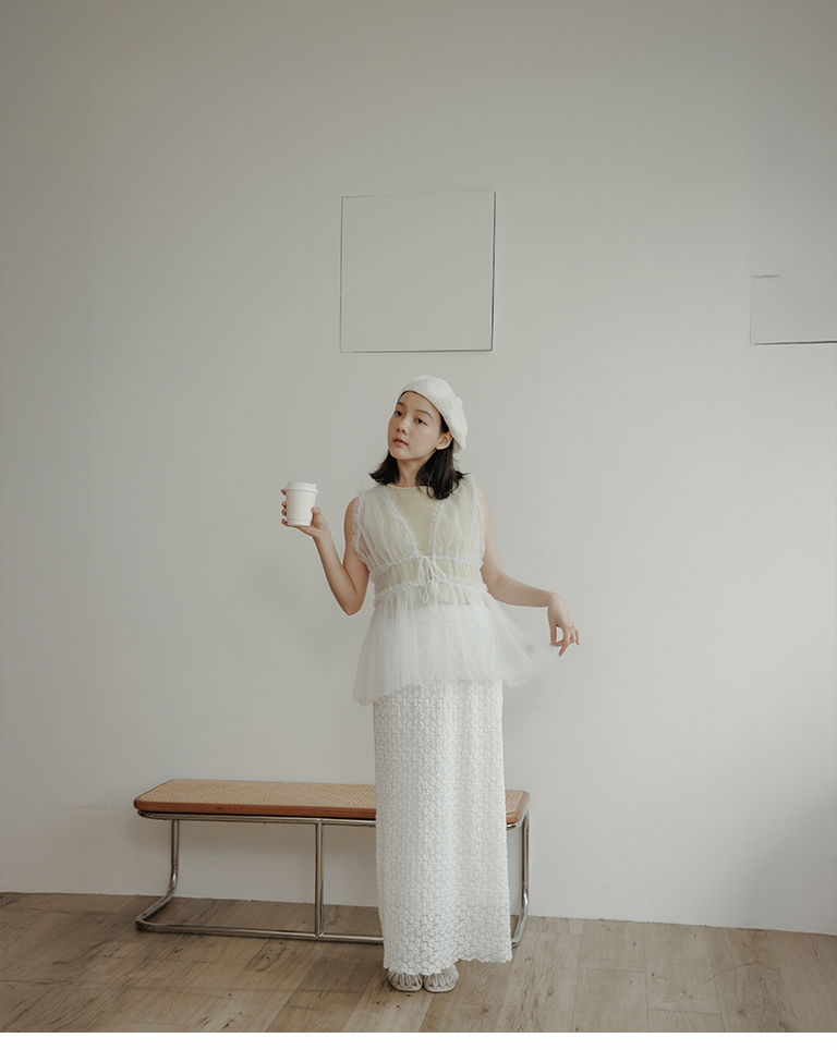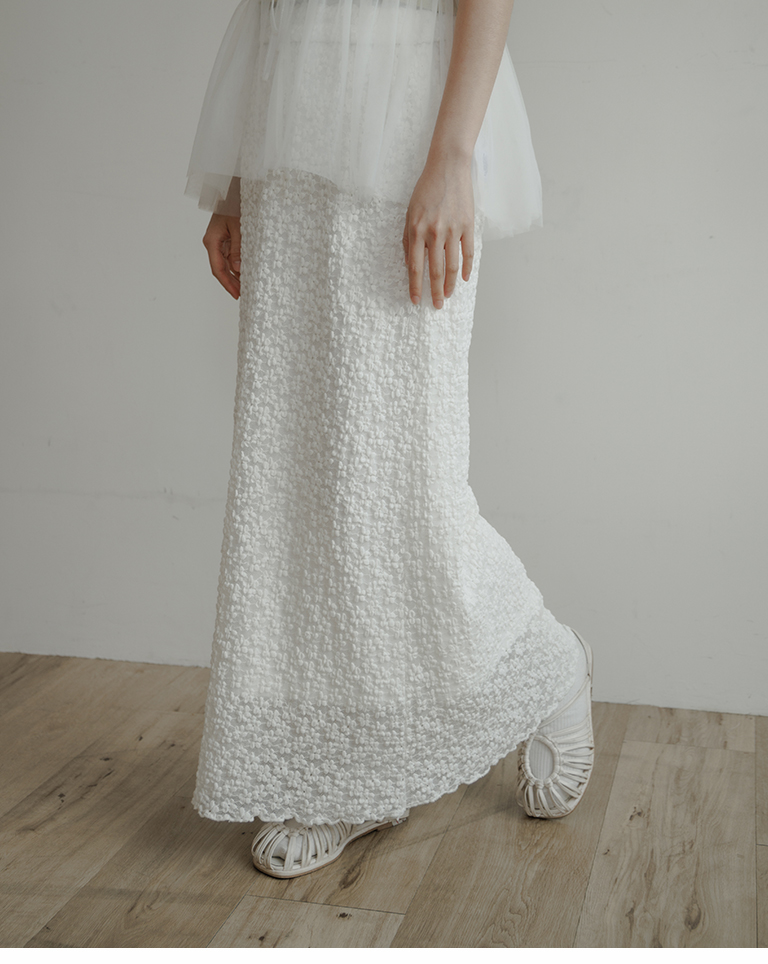 蕾丝缇花设计松紧腰头长裙