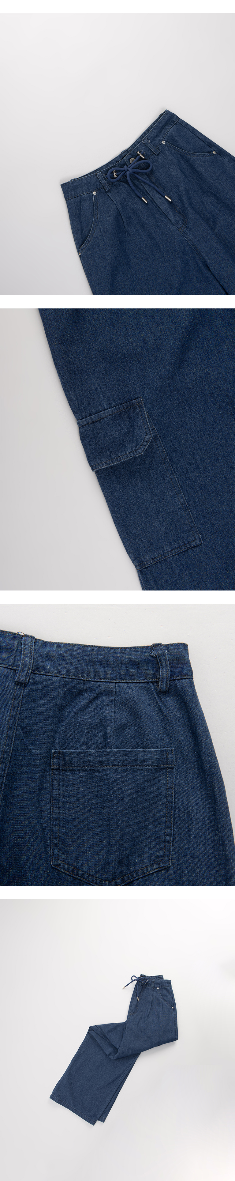 侧大口袋造型抽绳设计牛仔工装裤