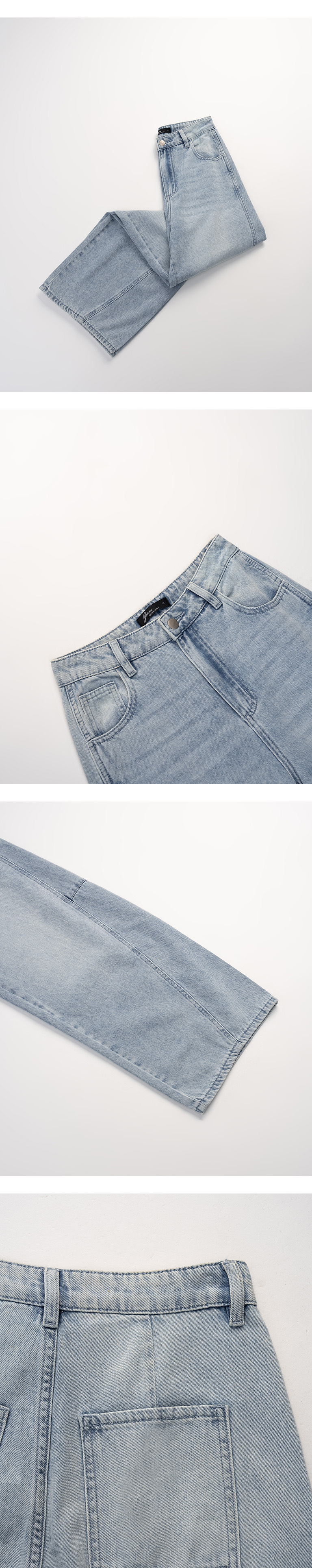 质感剪接设计锥型牛仔裤