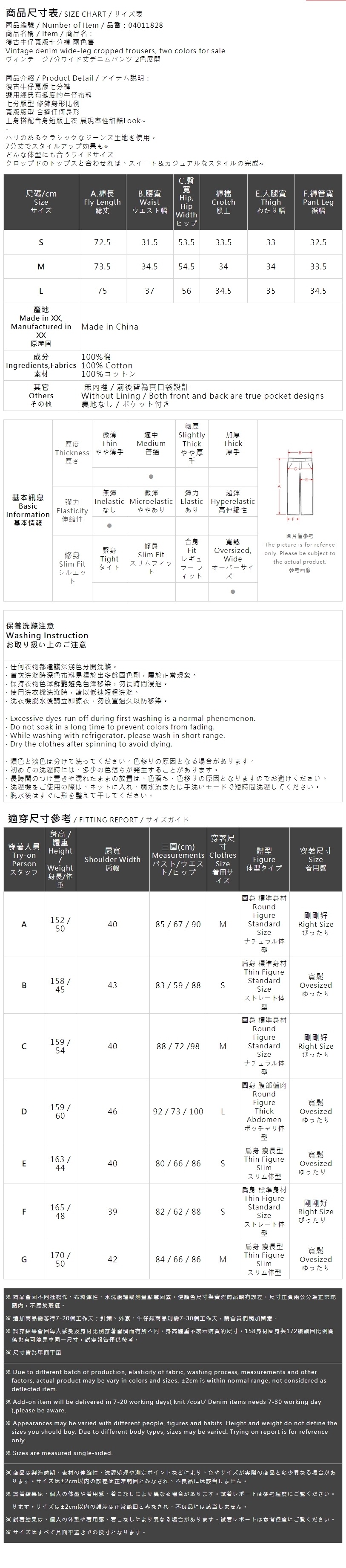复古牛仔宽版七分裤 两色售 S/M/L【04011828】现+预