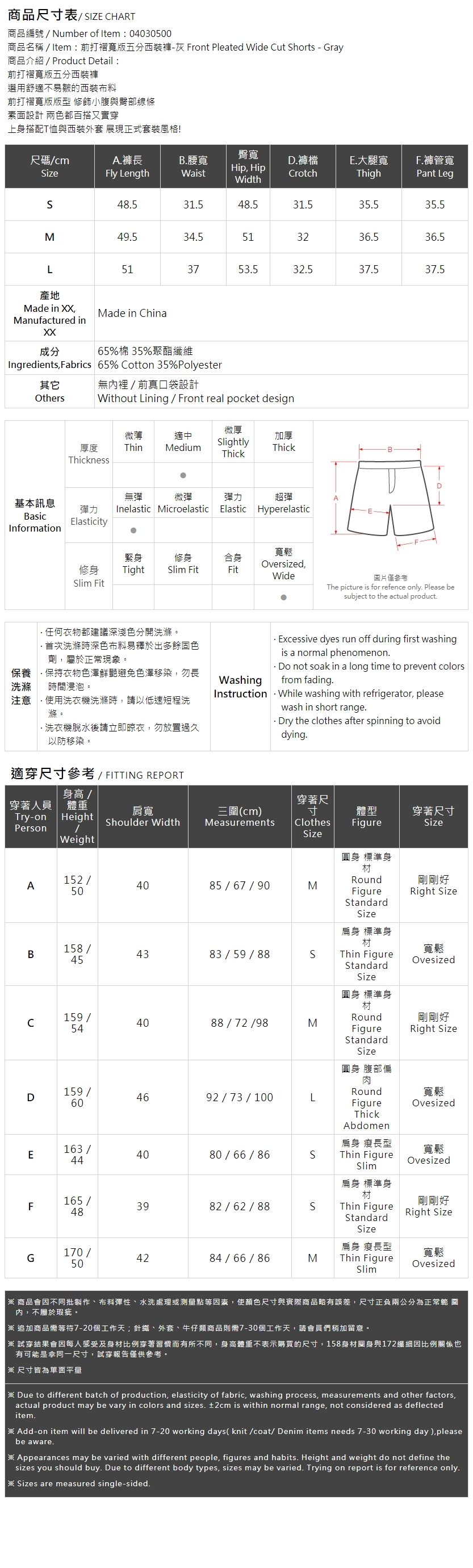 前打褶宽版五分西装裤-灰 S/M/L【04030500】现+预