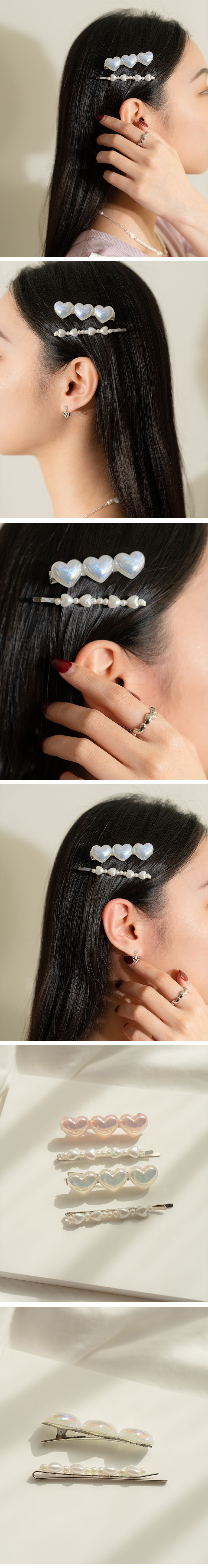 细闪珠光爱心发夹两件组