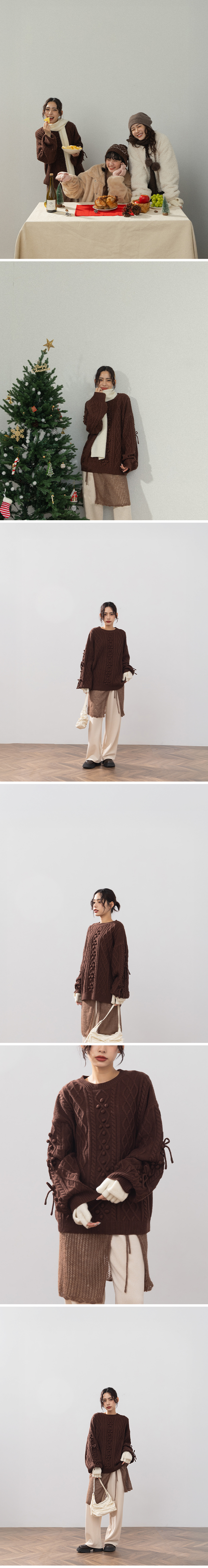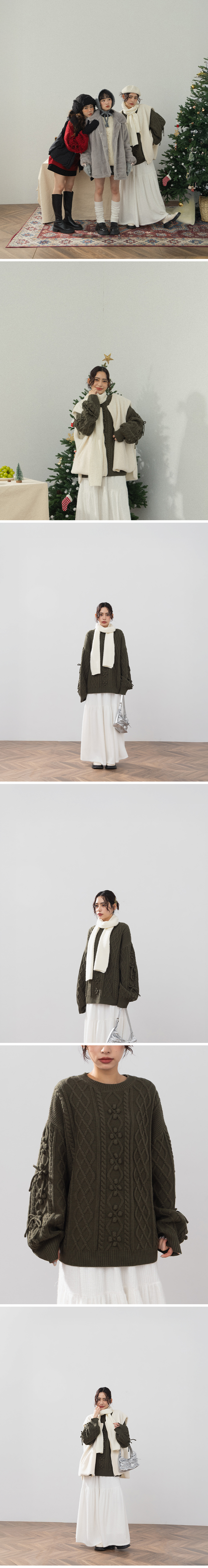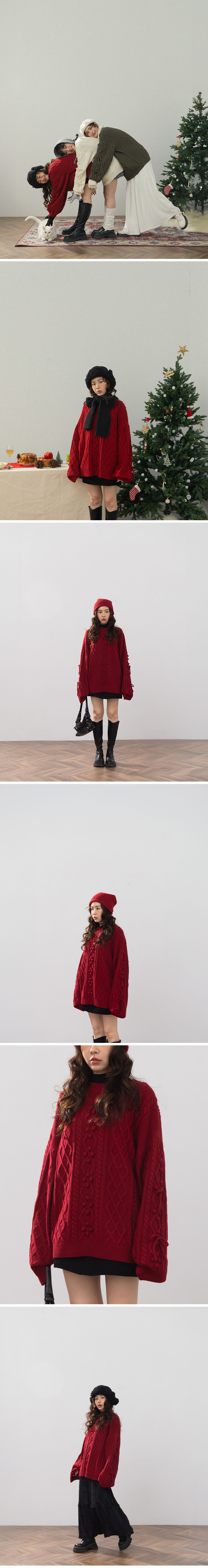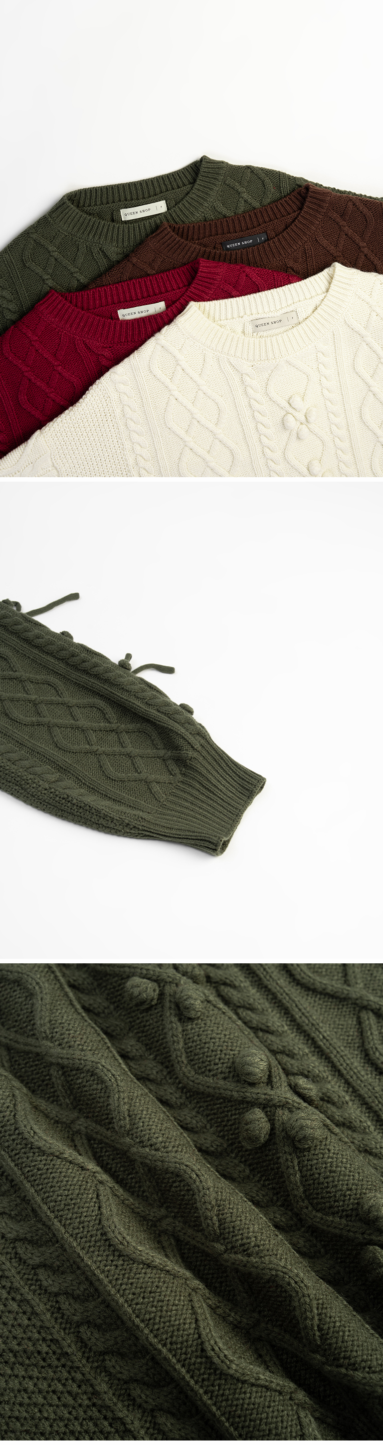立体蝴蝶结小球麻花针织毛衣 四色售【01013508】现+预