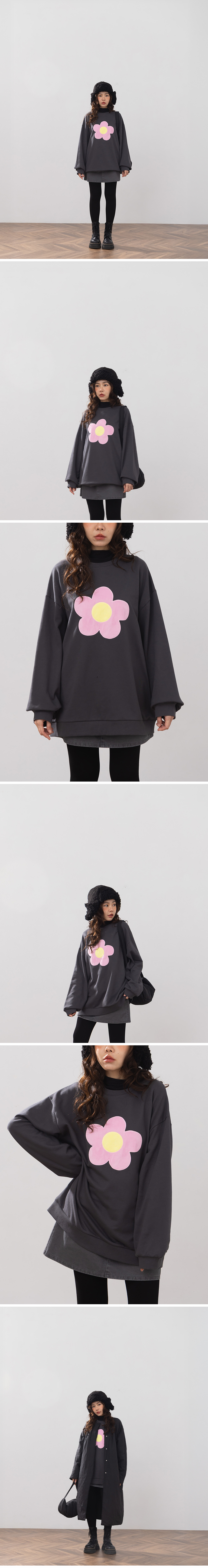 立体磨毛花花长袖卫衣-深灰【01099427】现+预