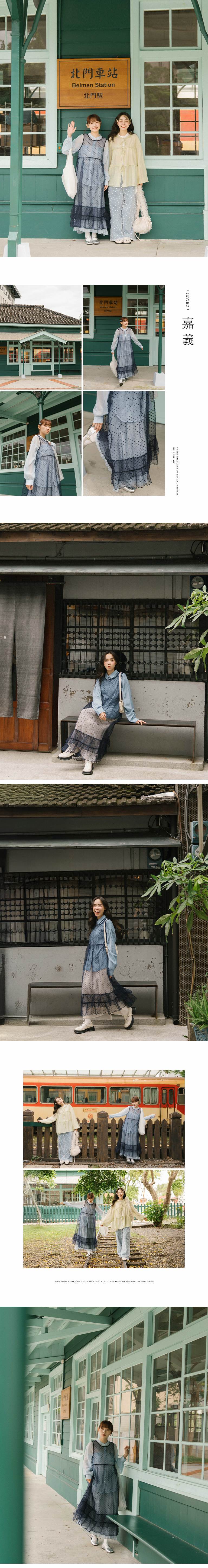 立体点点蛋糕下摆透肤绑带罩衫-深蓝【01099168】现+预