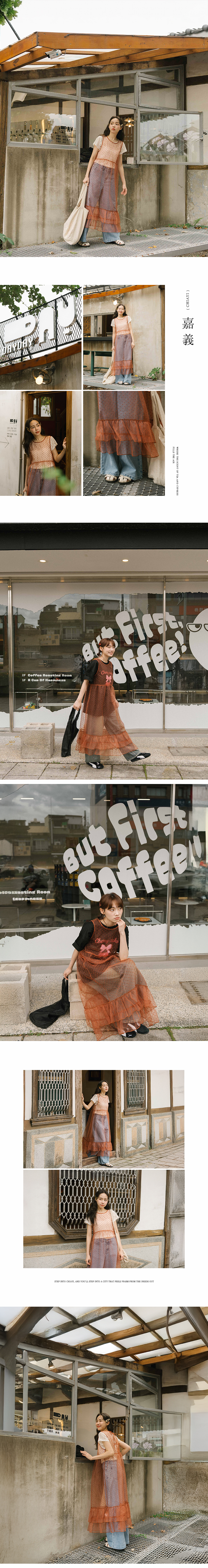 立体点点蛋糕下摆透肤绑带罩衫-暗橘【01099170】现+预