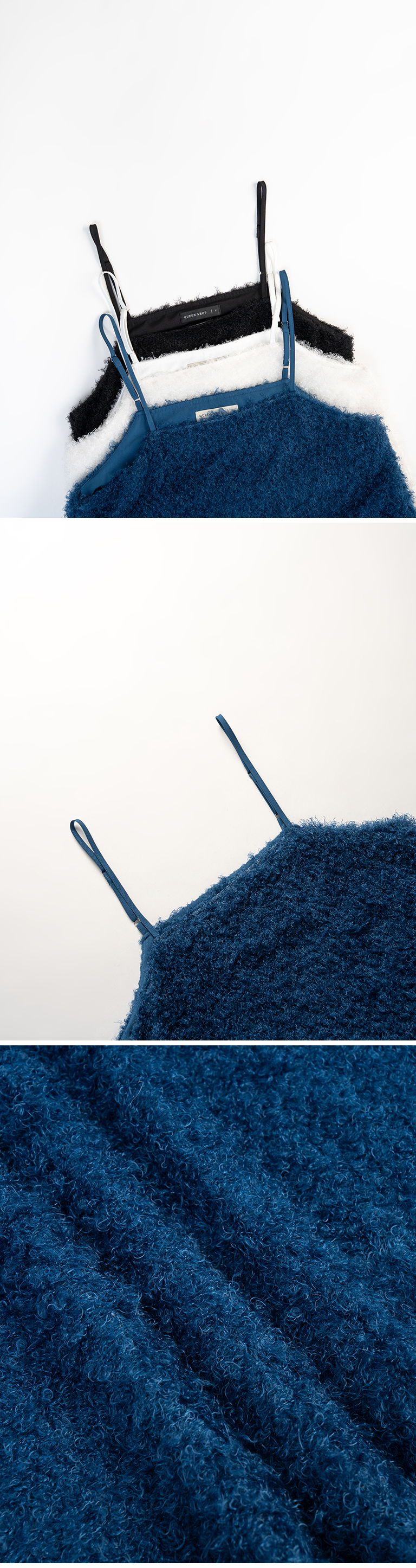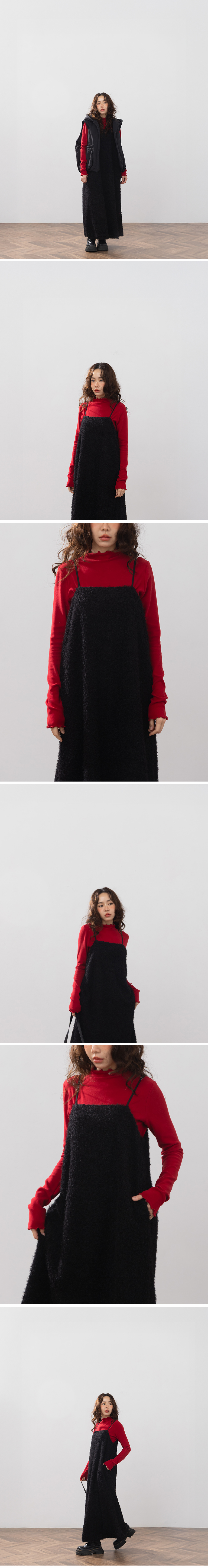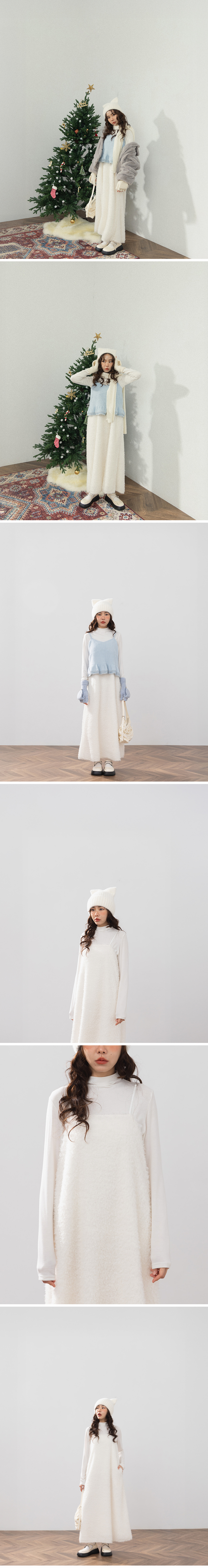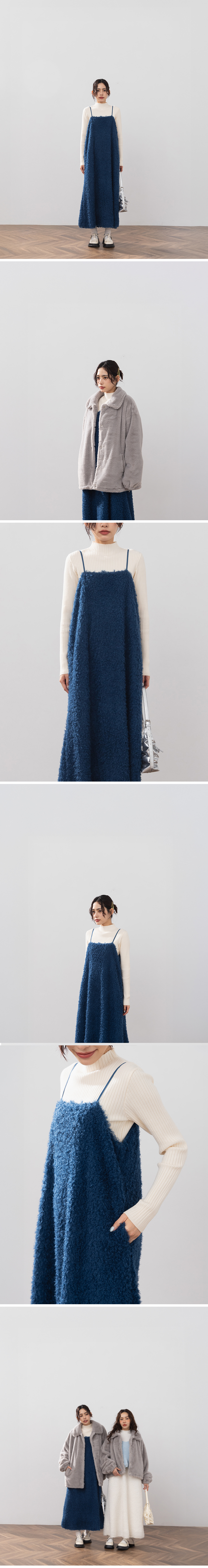 立体毛绒设计伞襬细肩长洋装