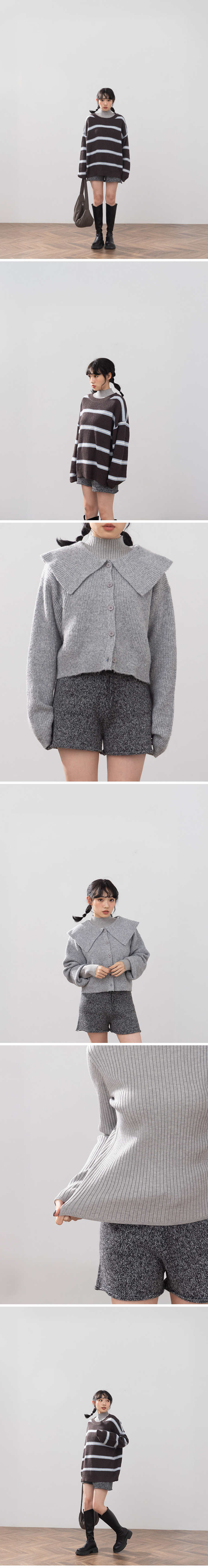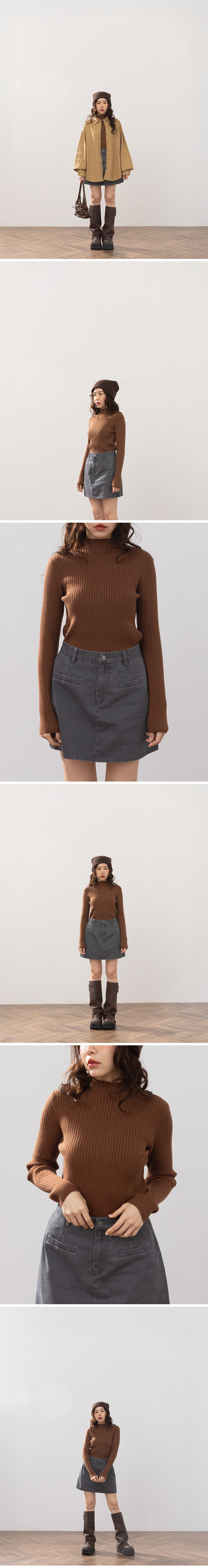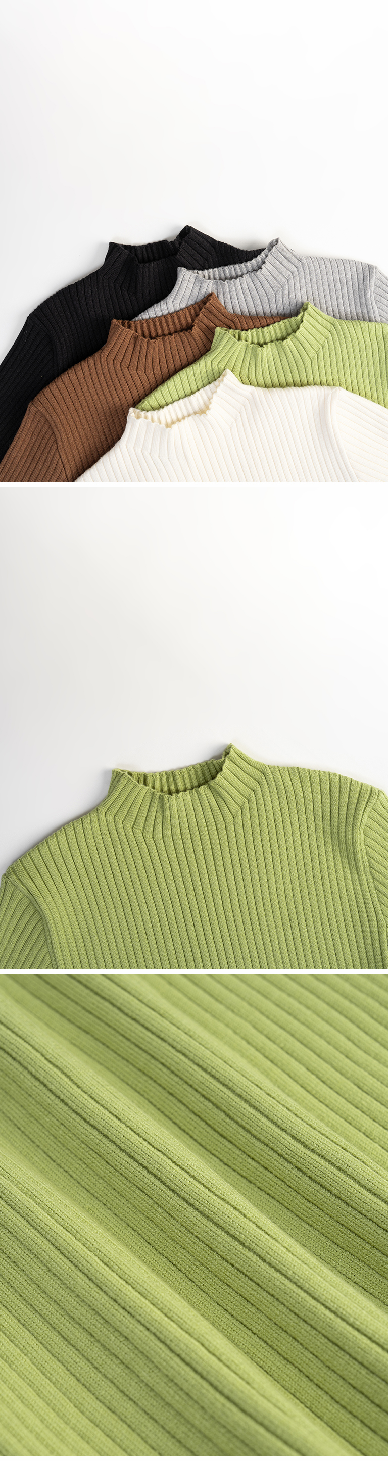 基础素面坑条针织高领上衣