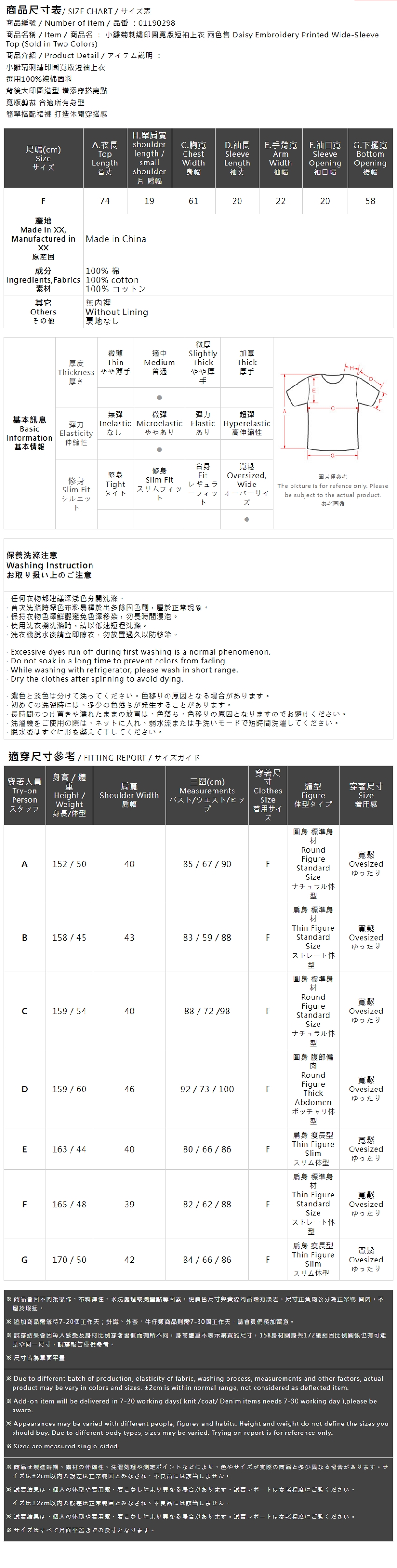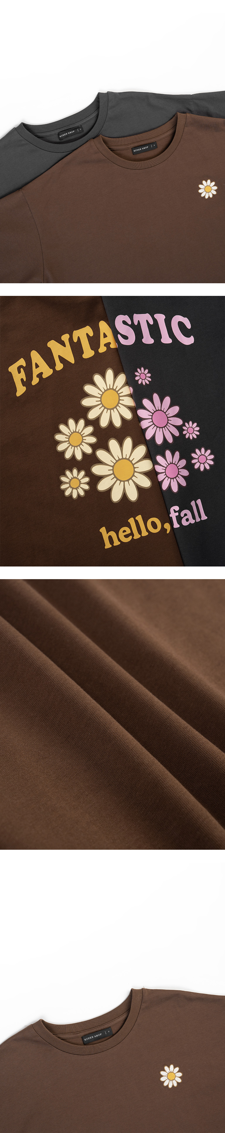 小雏菊刺绣印图宽版短袖上衣 两色售【01190298】现+预