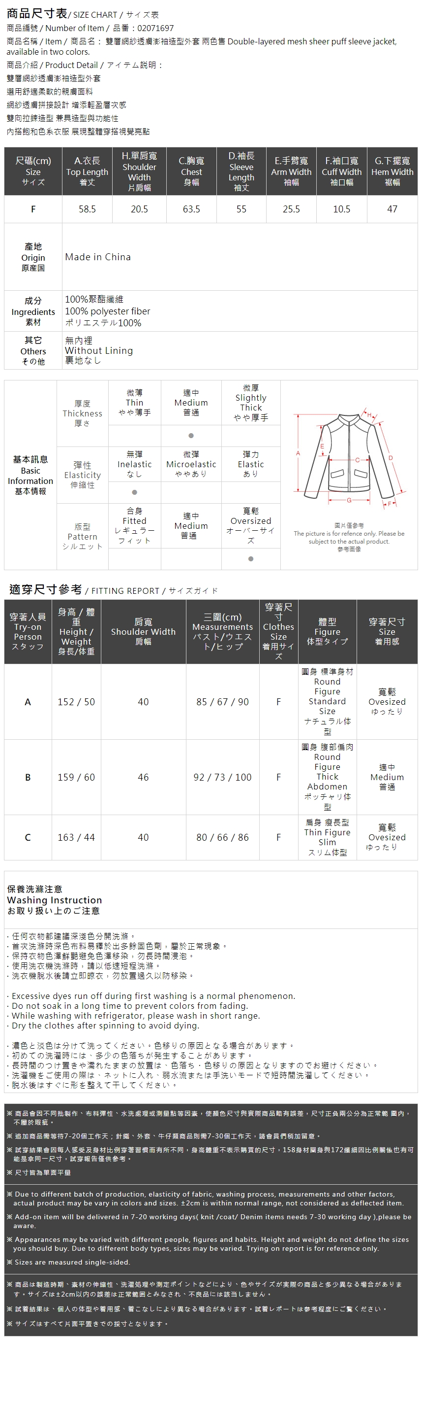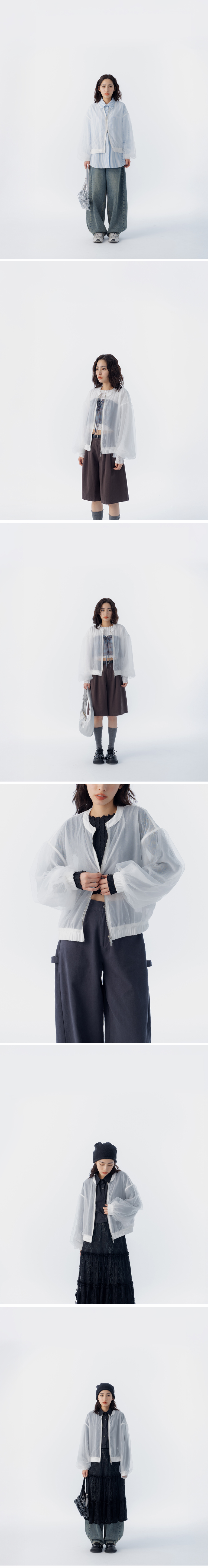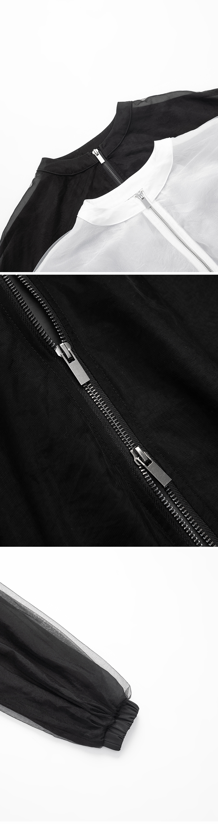 双层网纱透肤澎袖造型外套