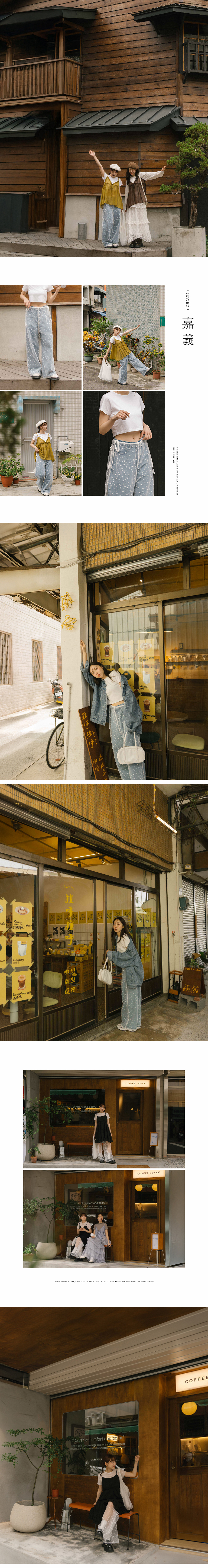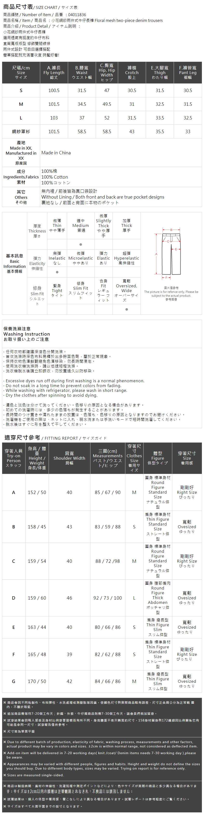 小花网纱两件式牛仔长裤 S/M/L【04011836】现+预