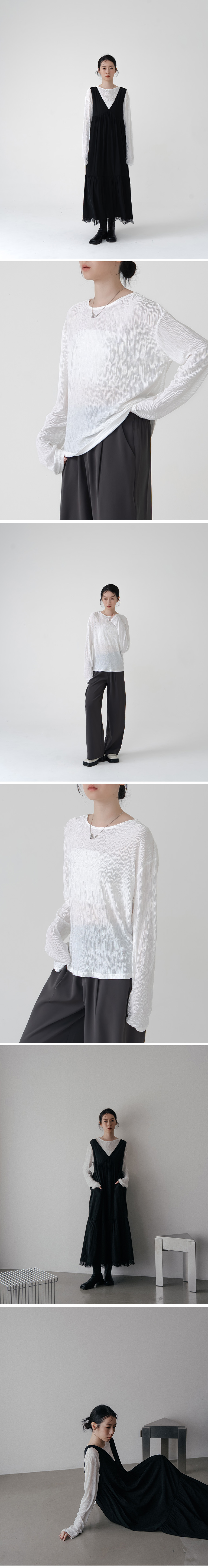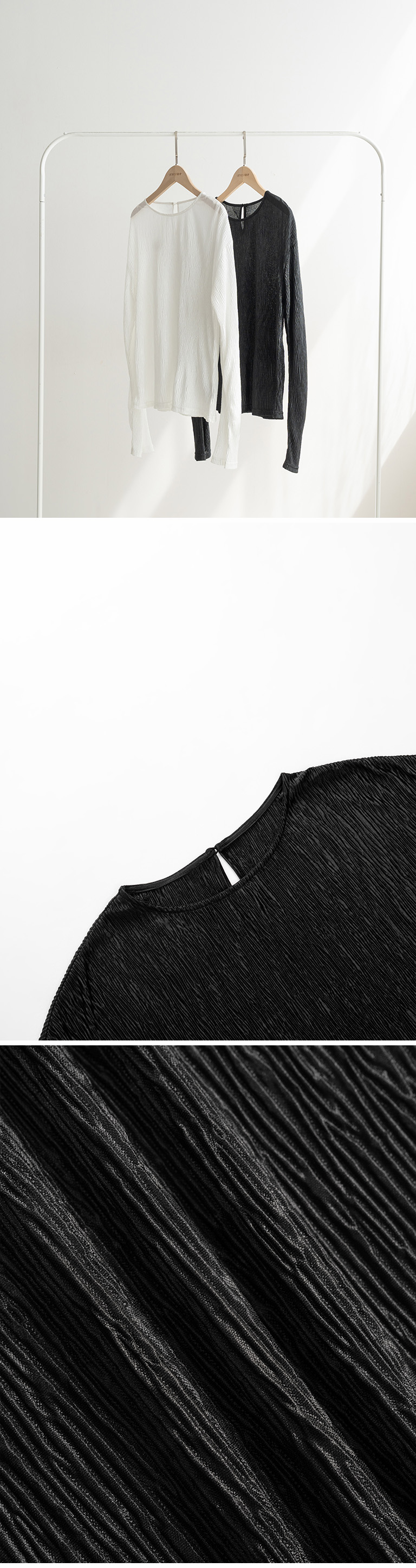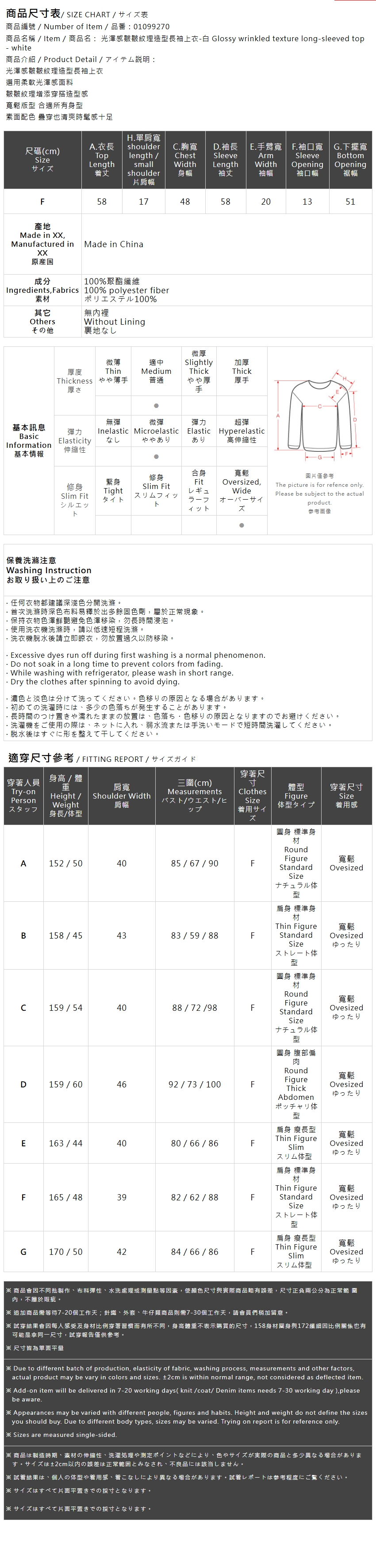 光泽感皱皱纹理造型长袖上衣-白【01099270】现+预