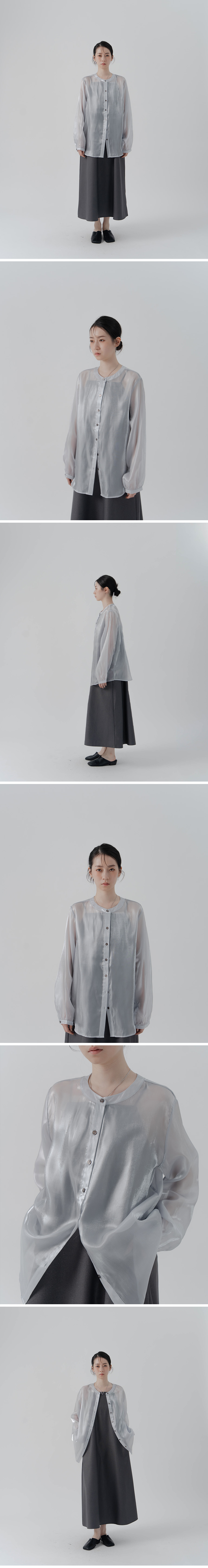 光泽感中山领透肤长袖衬衫-灰【01025660】现+预