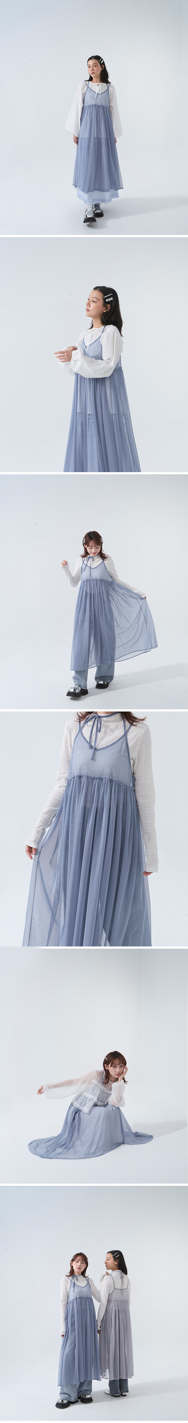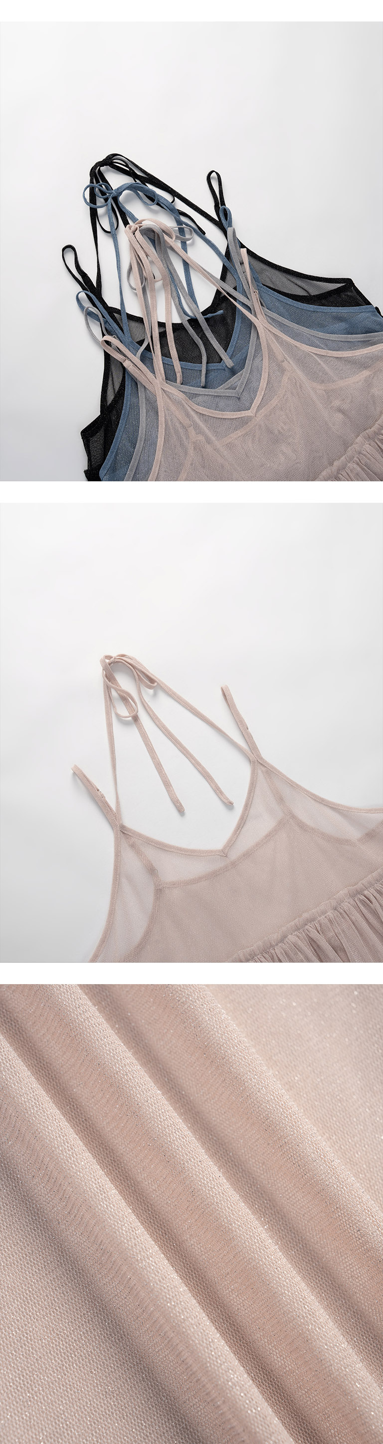 金葱网纱设计细肩绑带长罩衫-蓝【01099165】现+预