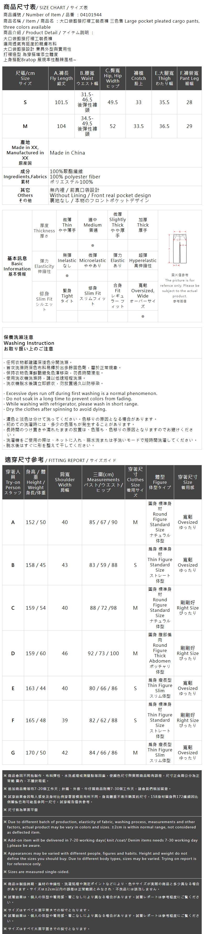 大口袋剪接打褶工装长裤 三色售 S/M【04101944】现+预
