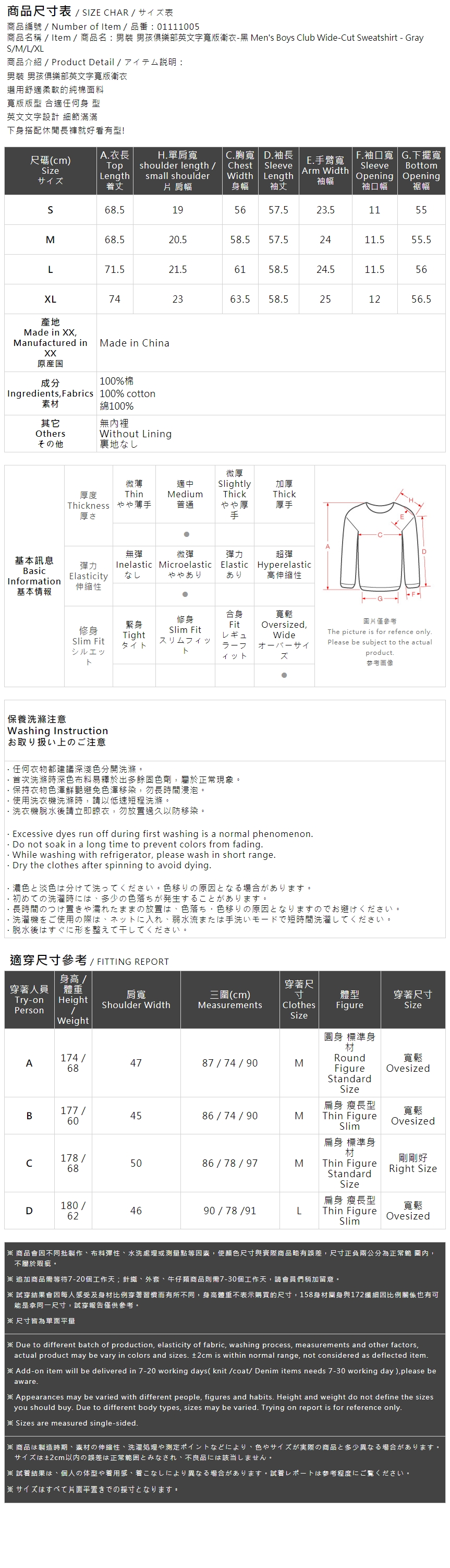男装 男孩俱乐部英文字宽版卫衣-黑 S-XL【01111005】现+预