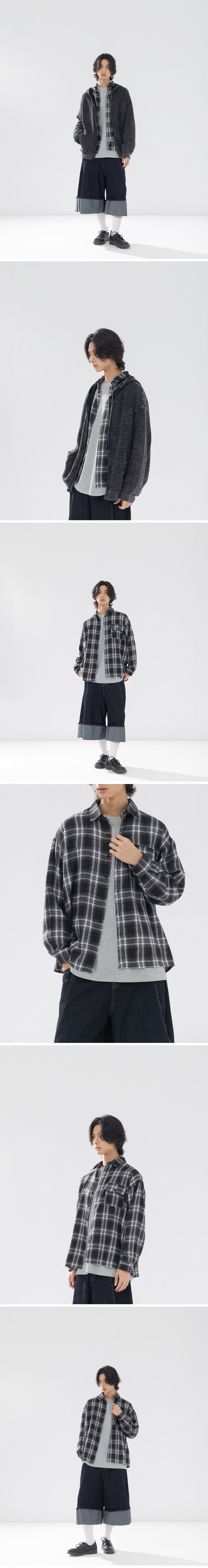 男装 经典格纹配色设计磨毛衬衫-黑M/L【01025662】现+预