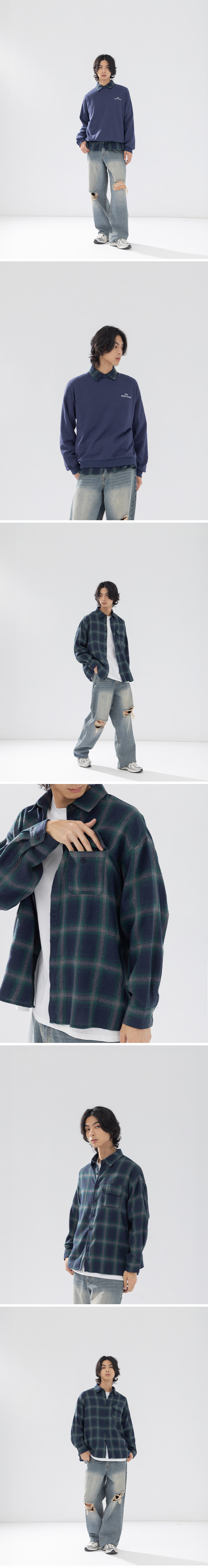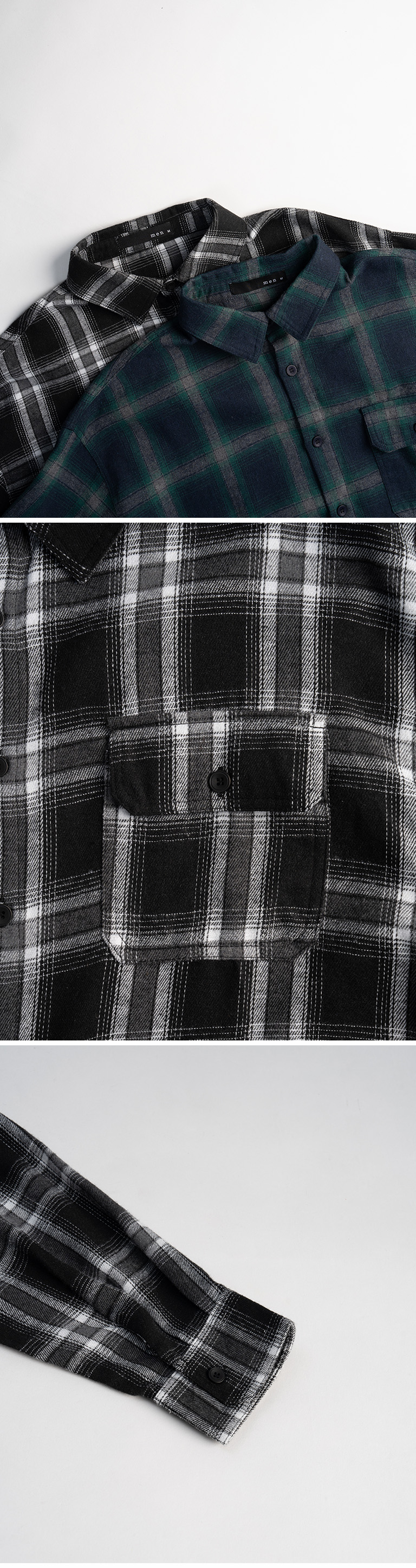 男装 经典格纹配色设计磨毛衬衫