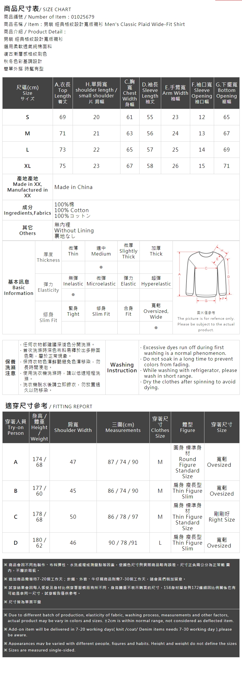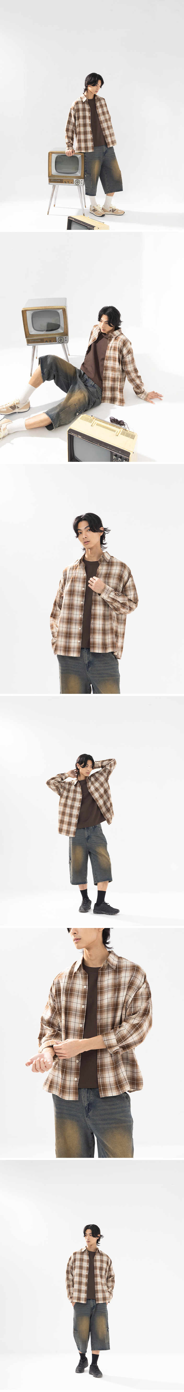 男装 经典格纹设计宽版衬衫