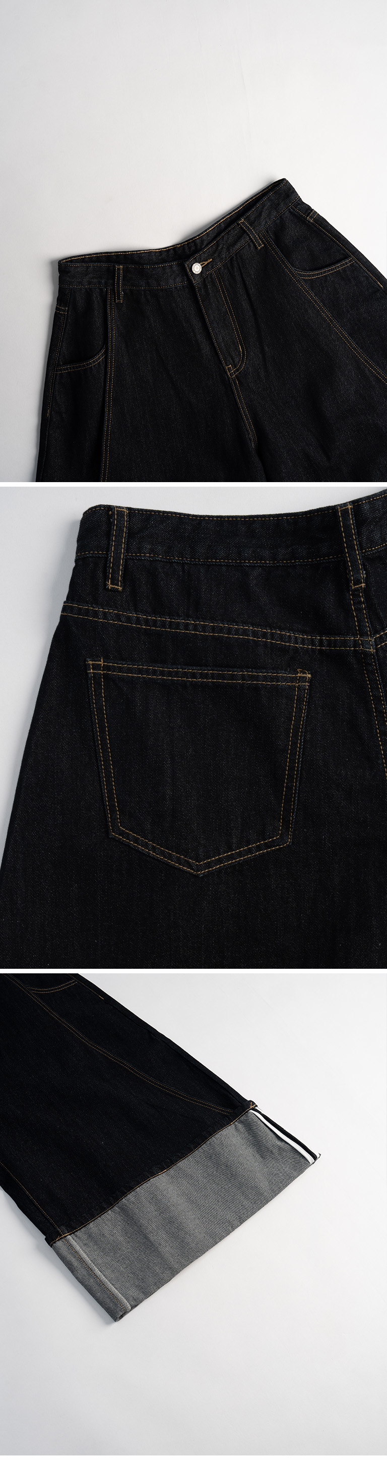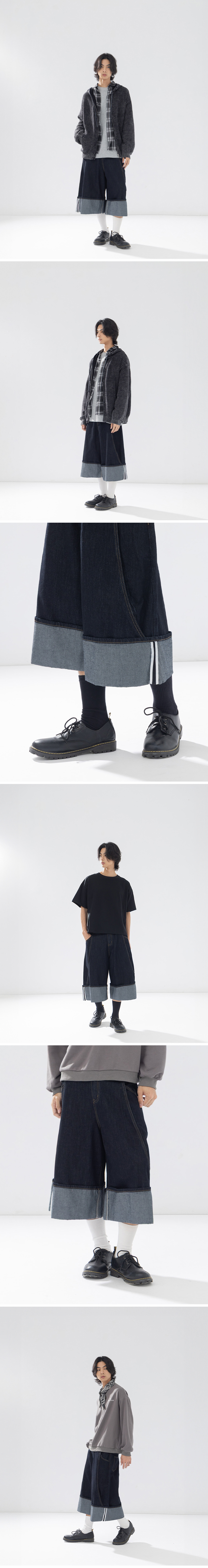 男装 原色反褶设计牛仔七分裤