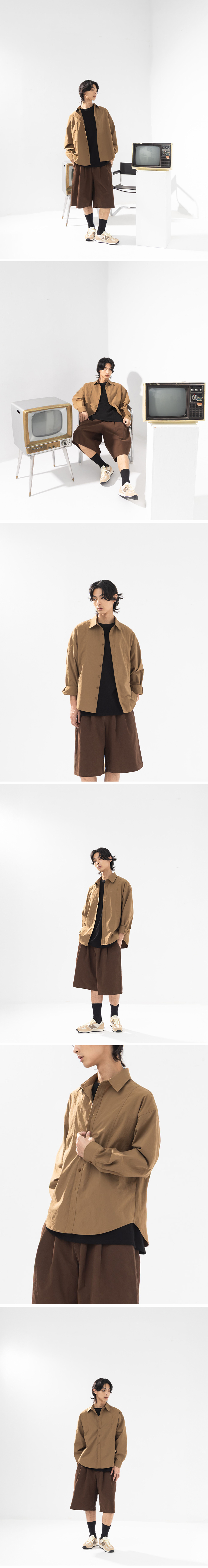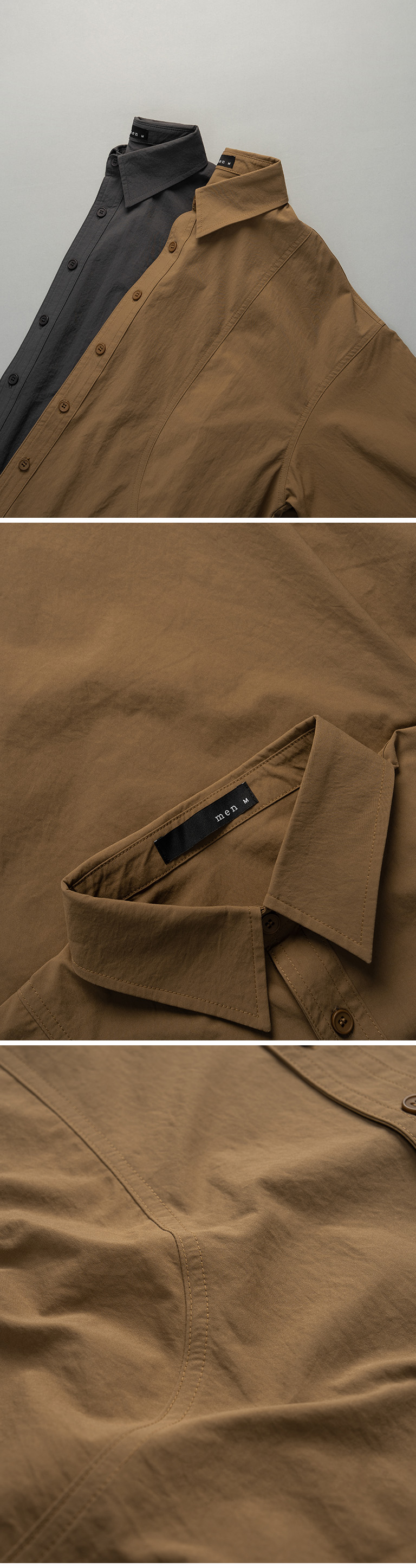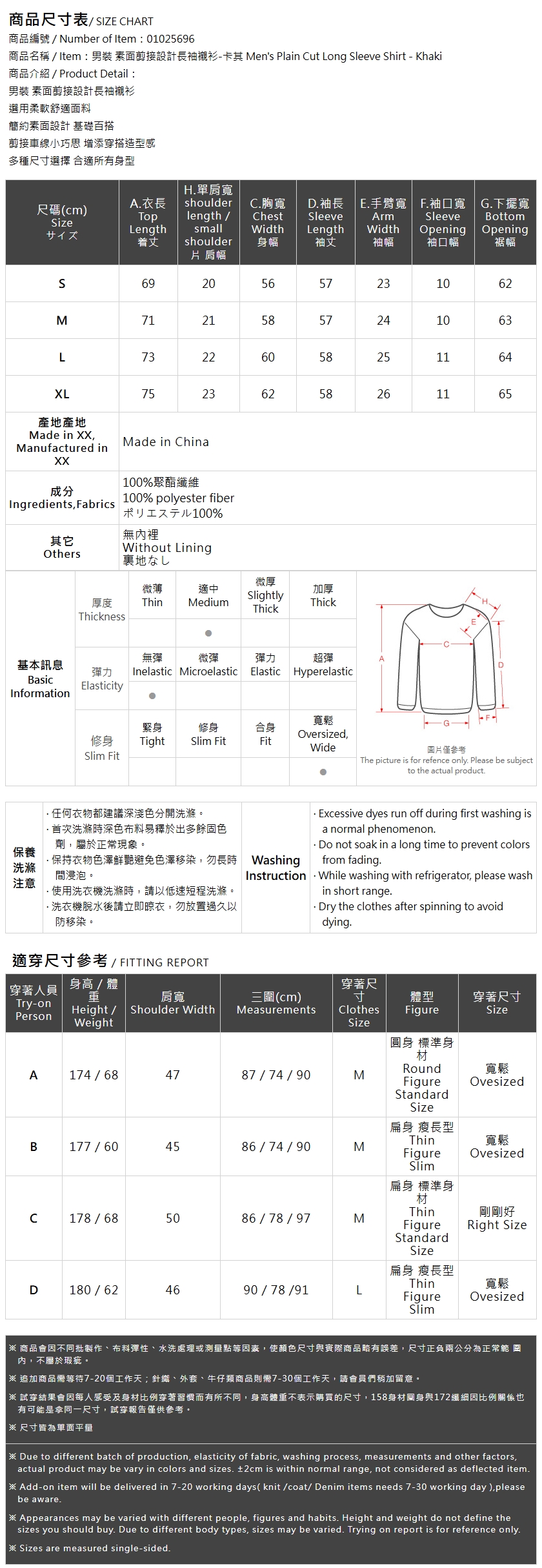 男装 素面剪接设计长袖衬衫-卡其 S-XL【01025696】现+预