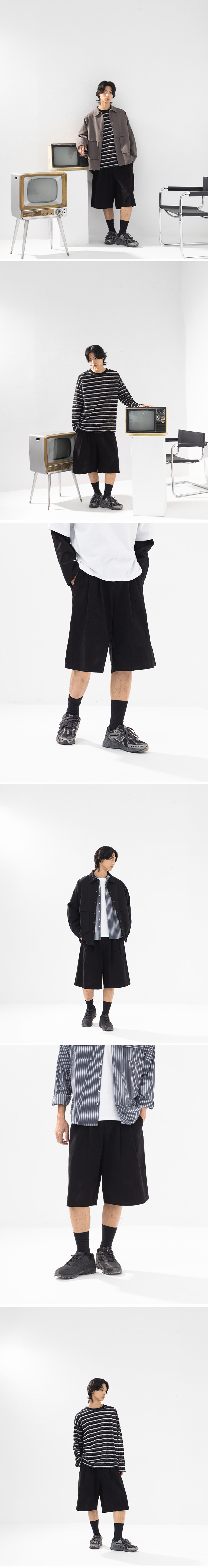 男装 素面斜纹打褶造型短裤-黑 S-XL【04130310】现+预