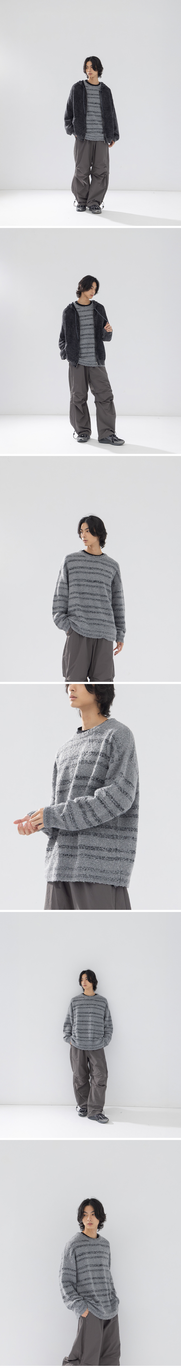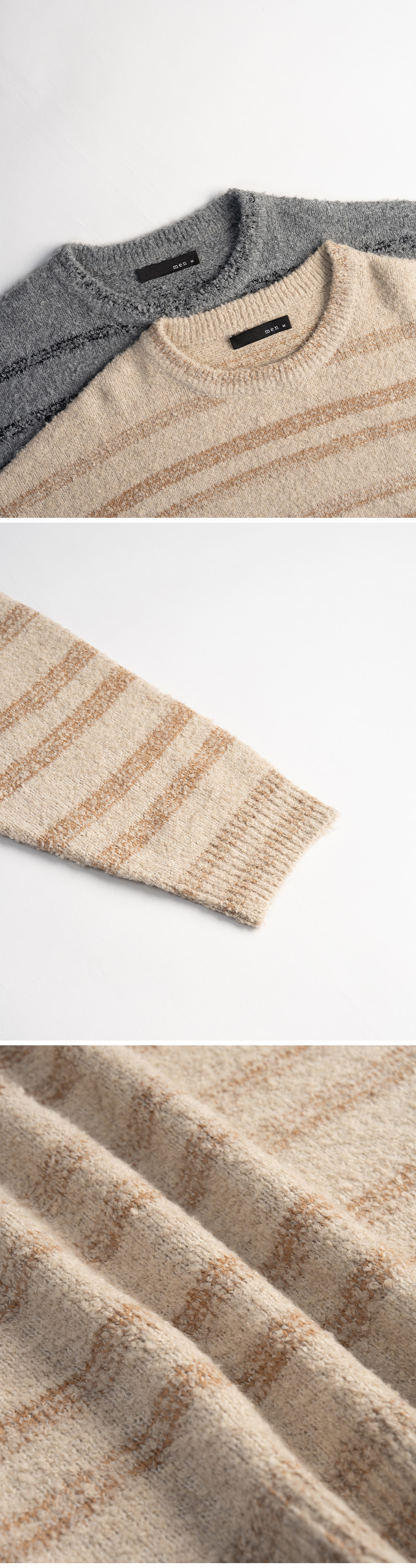男装 粗条纹造型宽版针织上衣-灰 M/L【01099311】现+预