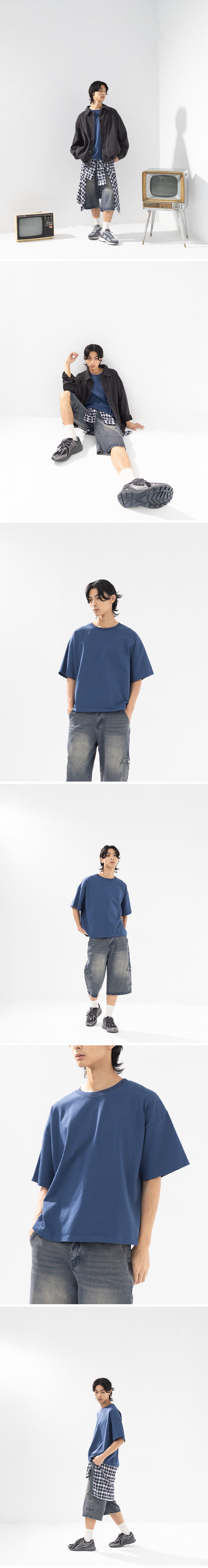 男装 厚磅宽短版设计BOXY上衣-蓝 S-XL【01190317】现+预