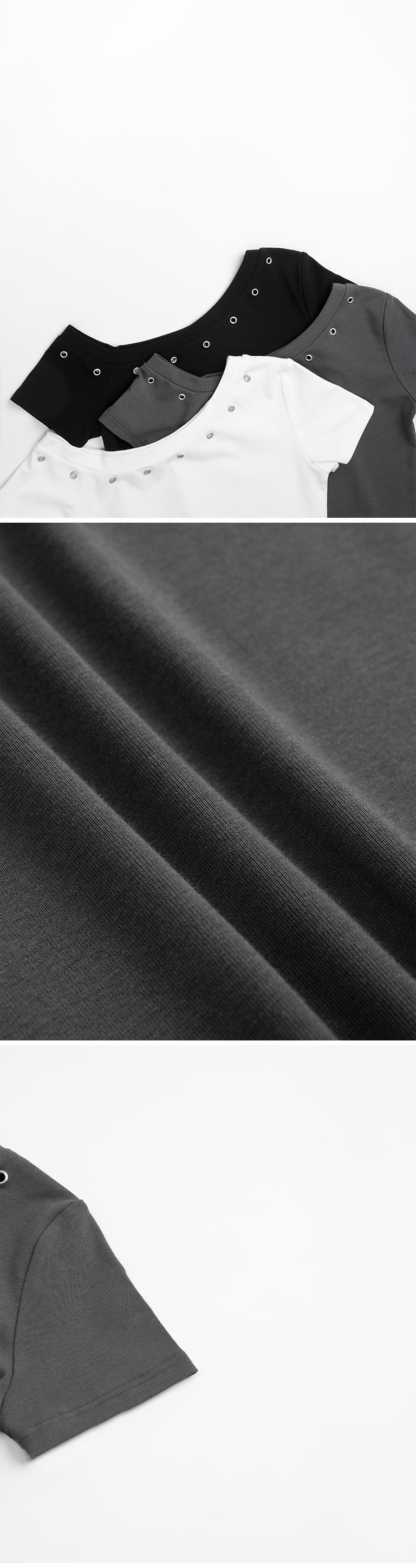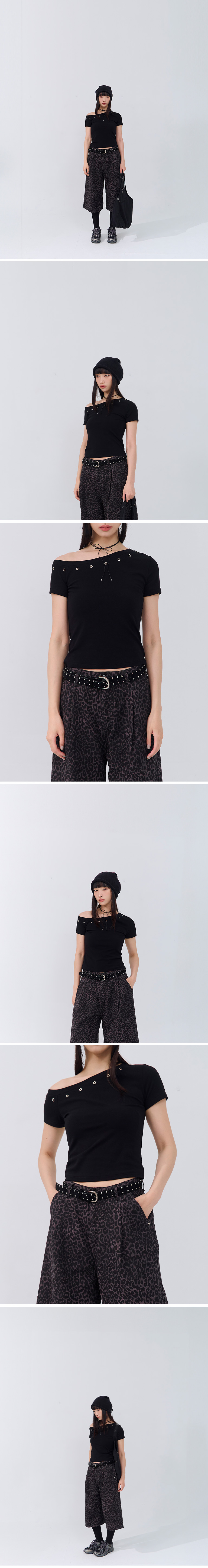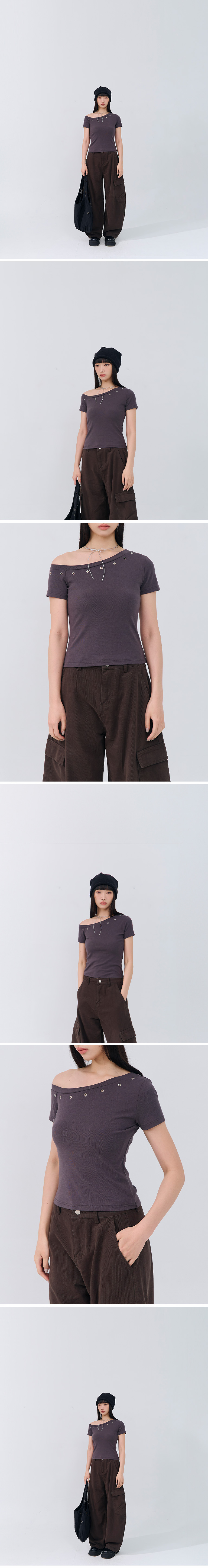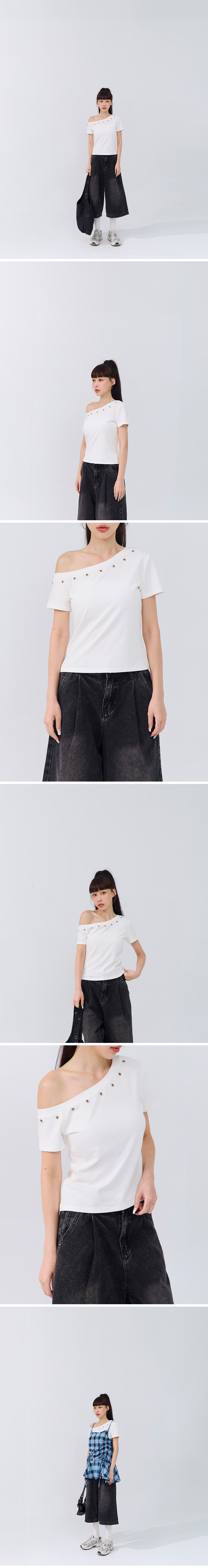 金属钉扣设计斜肩上衣
