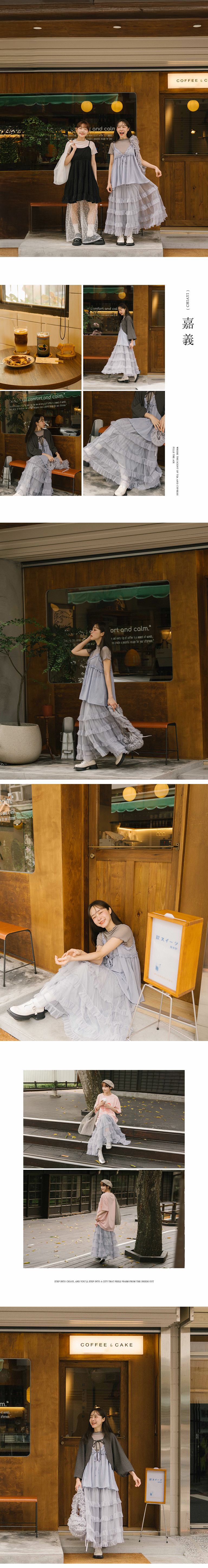 多层荷叶雪纺蛋糕长裙 三色售【03021639】现+预