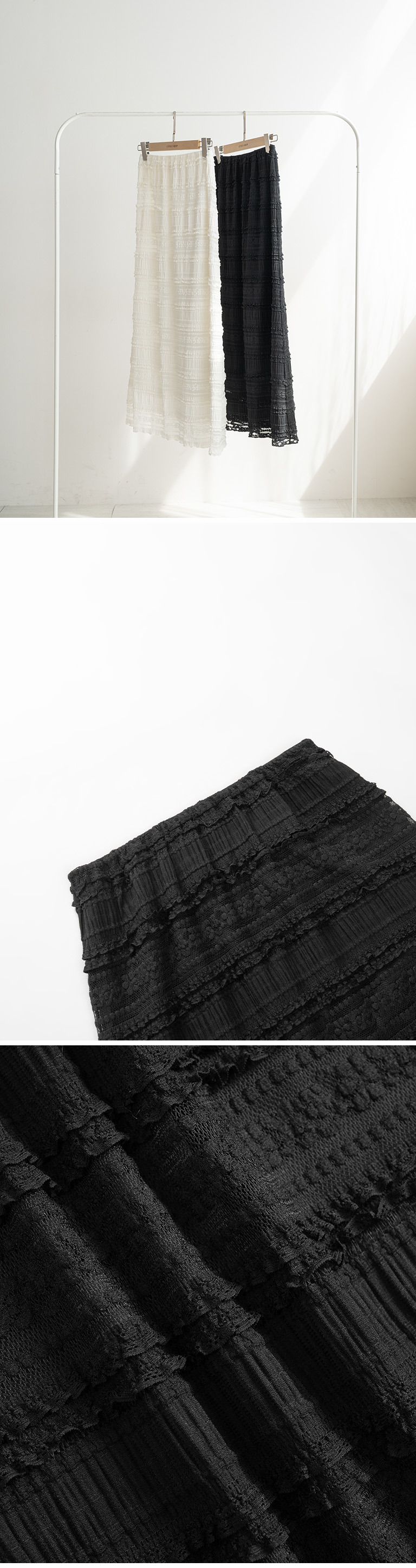 多层荷叶镂空蕾丝缇花长裙-黑 S/M【03021690】现+预