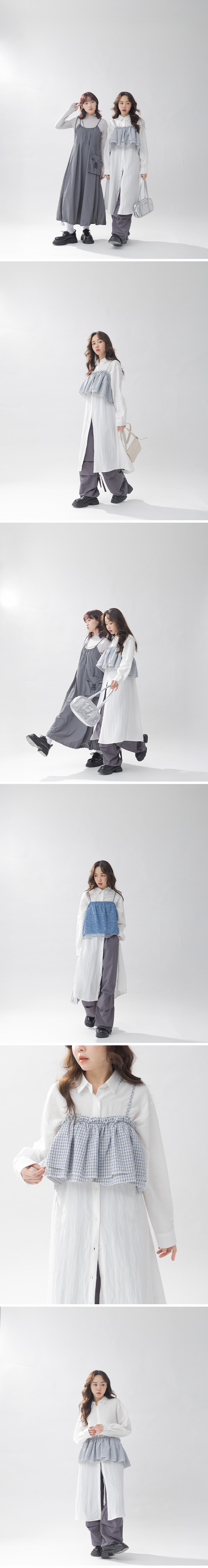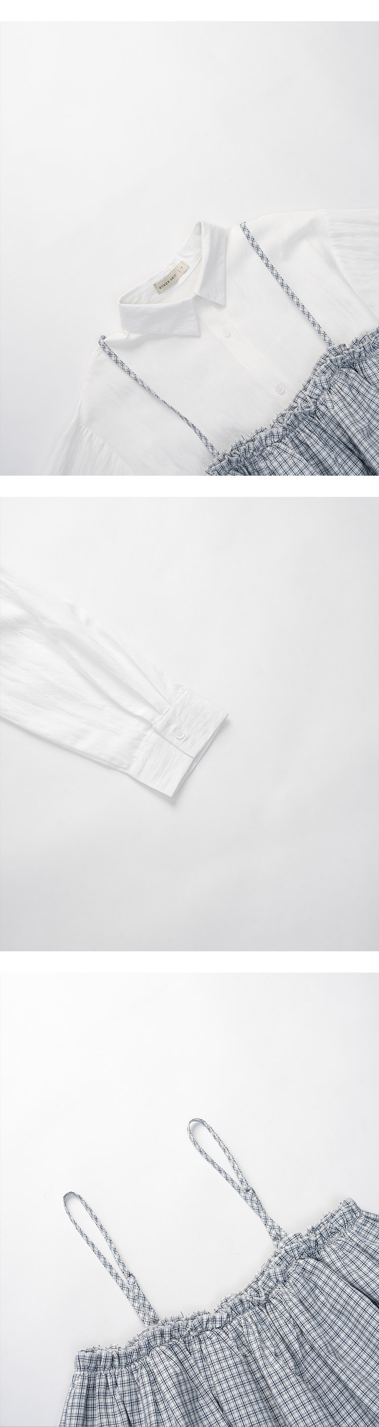 格纹背心两件式衬衫洋装