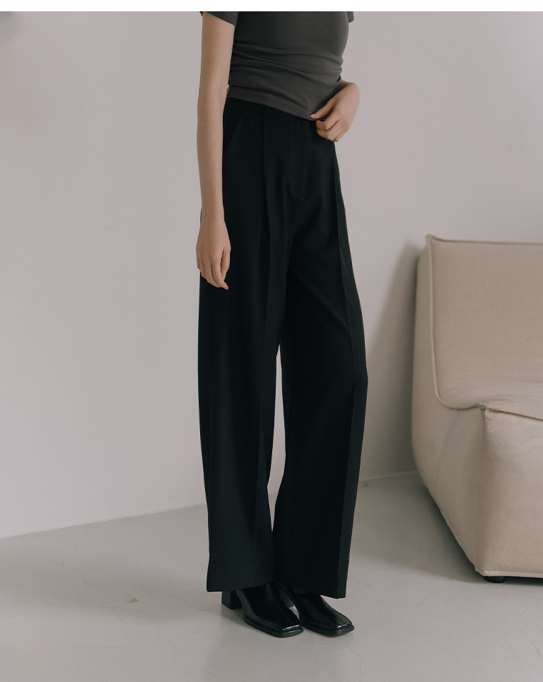 素面落地直筒西装长裤