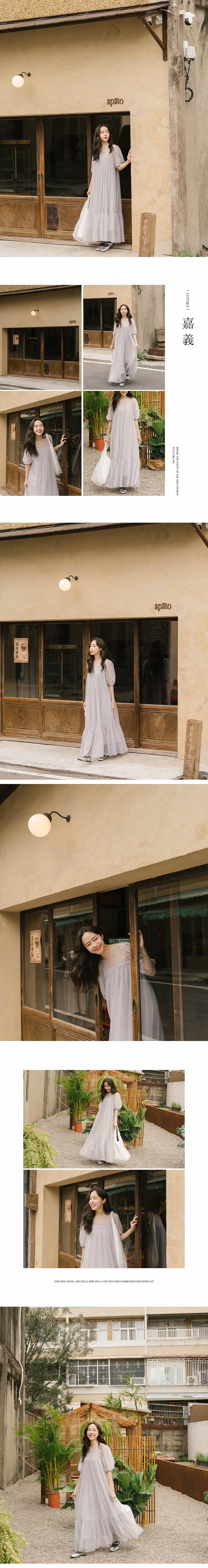 澎袖造型网纱两件式长洋装