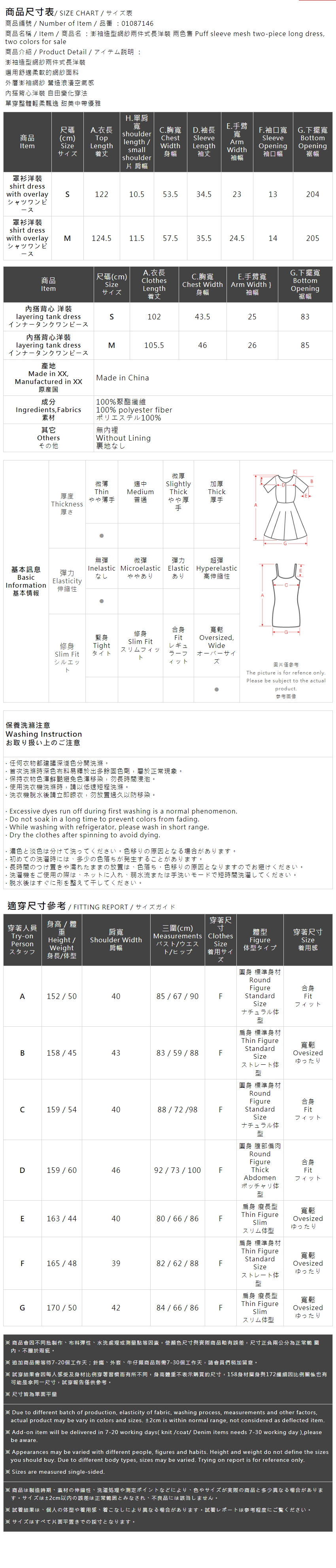 澎袖造型网纱两件式长洋装 两色售 S/M【01087146】现+预