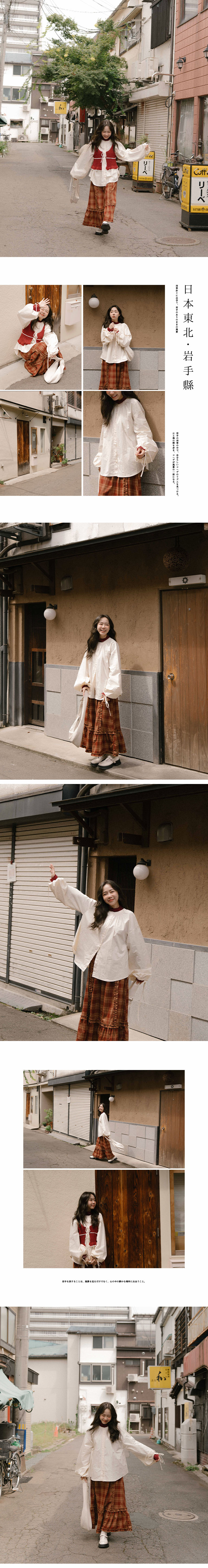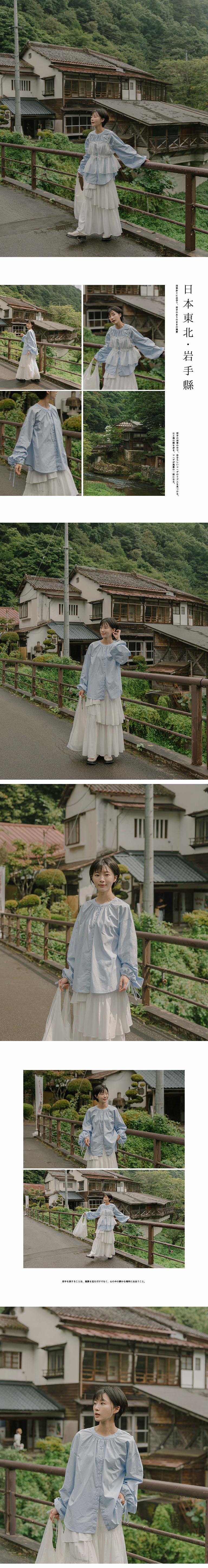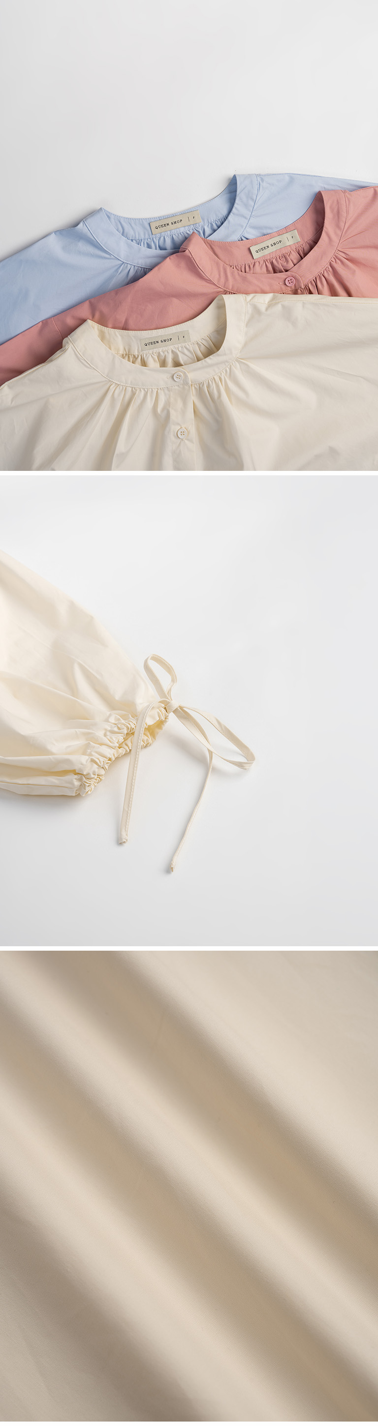 澎袖绑带缩口设计中山领衬衫