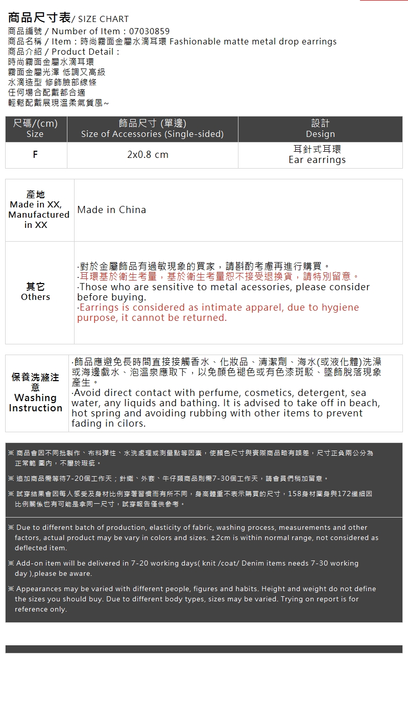 时尚雾面金属水滴耳环