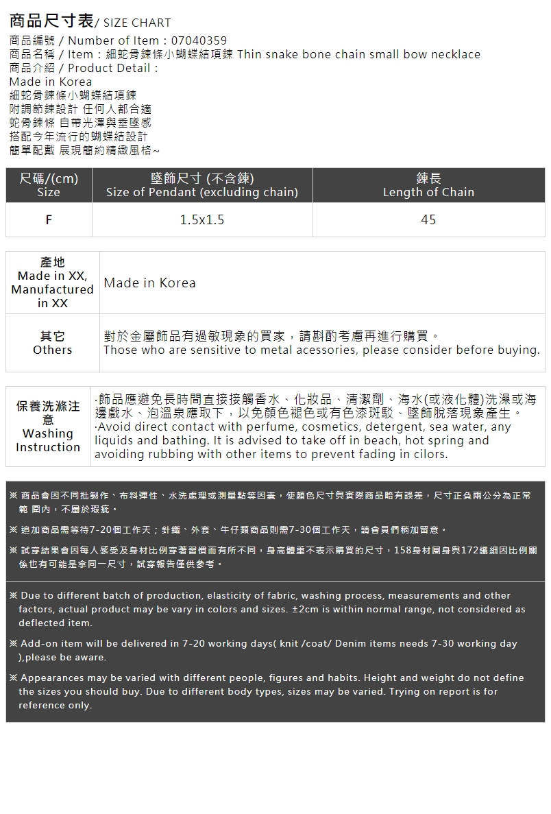细蛇骨鍊条小蝴蝶结项鍊【07040359】现+预