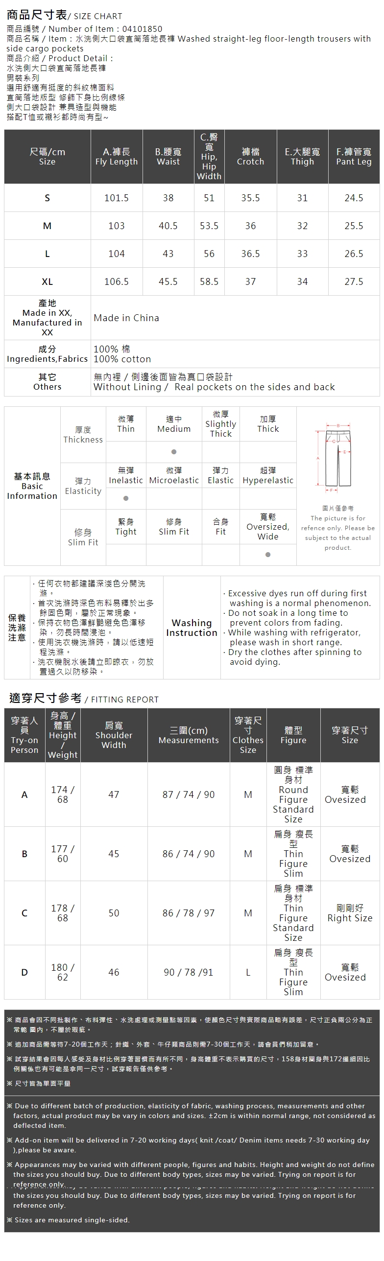 水洗侧大口袋直筒落地长裤