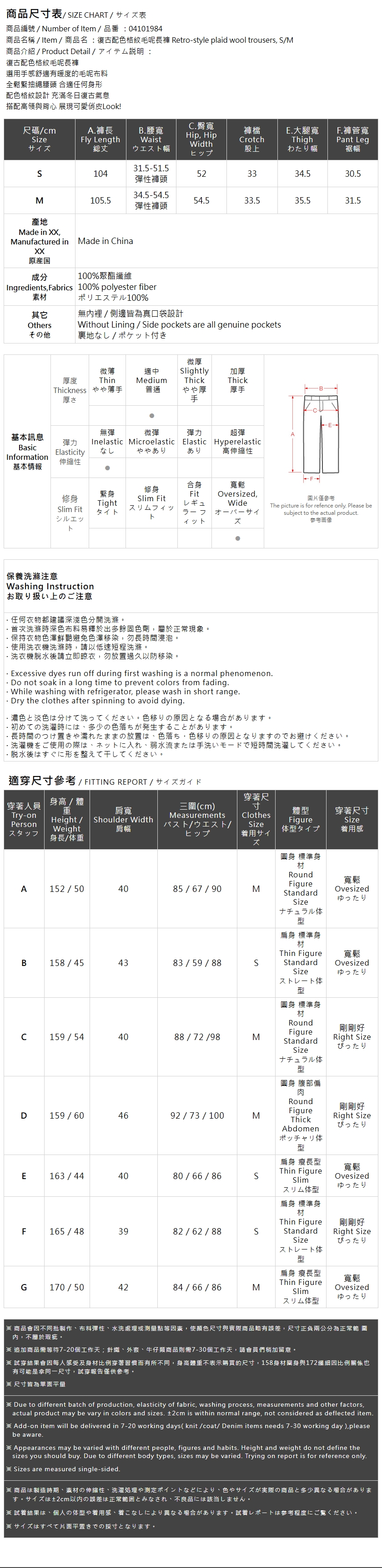 复古配色格纹毛呢长裤 S/M【04101984】现+预