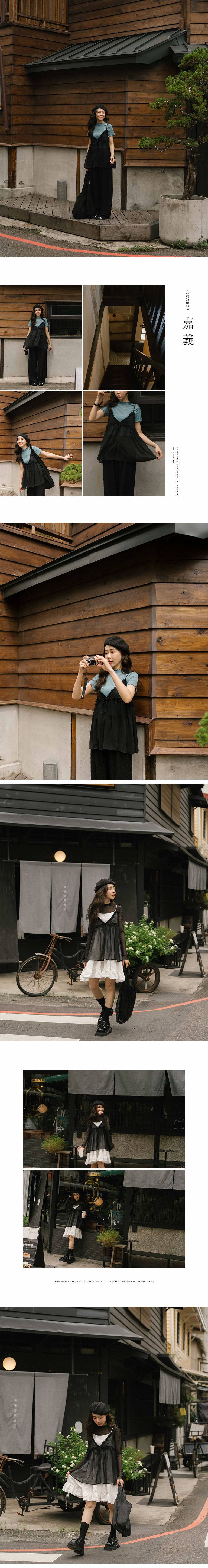 透纱绑带荷叶罩衫背心-黑【01099140】现+预