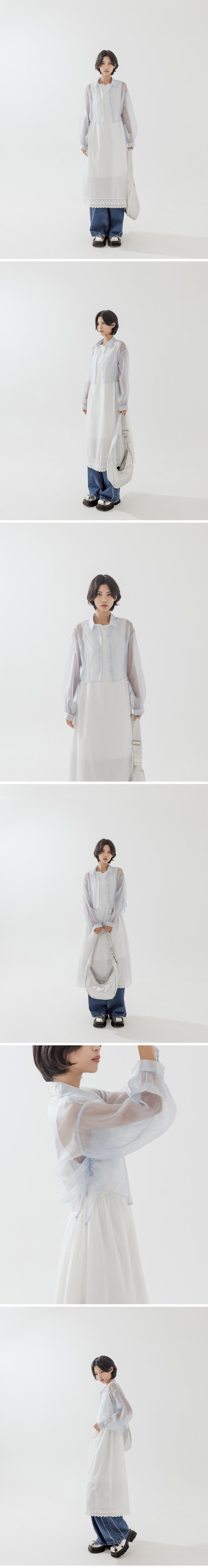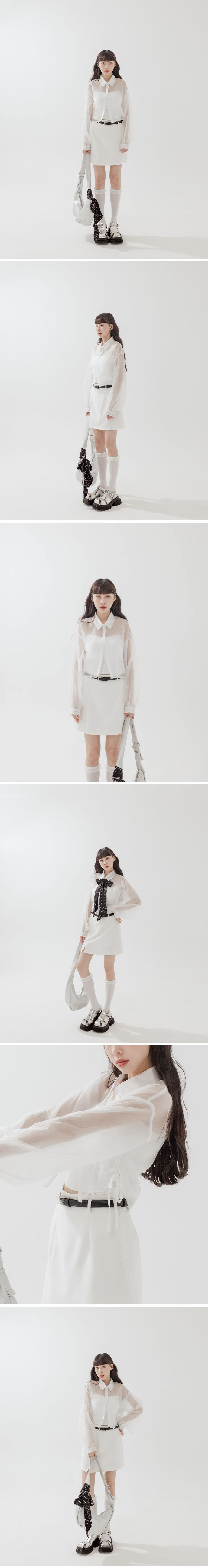 侧抽绳绑带设计透肤短版衬衫