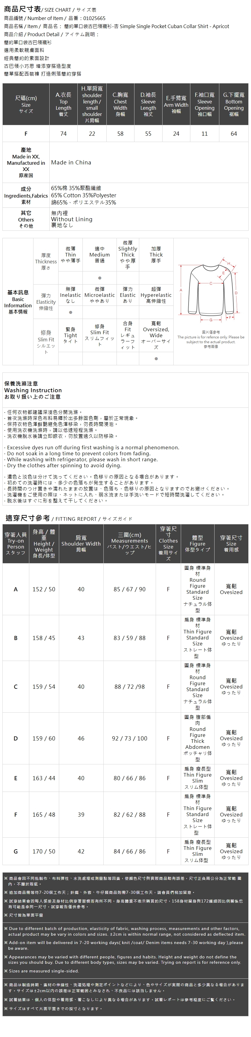 简约单口袋古巴领衬衫-杏【01025665】现+预